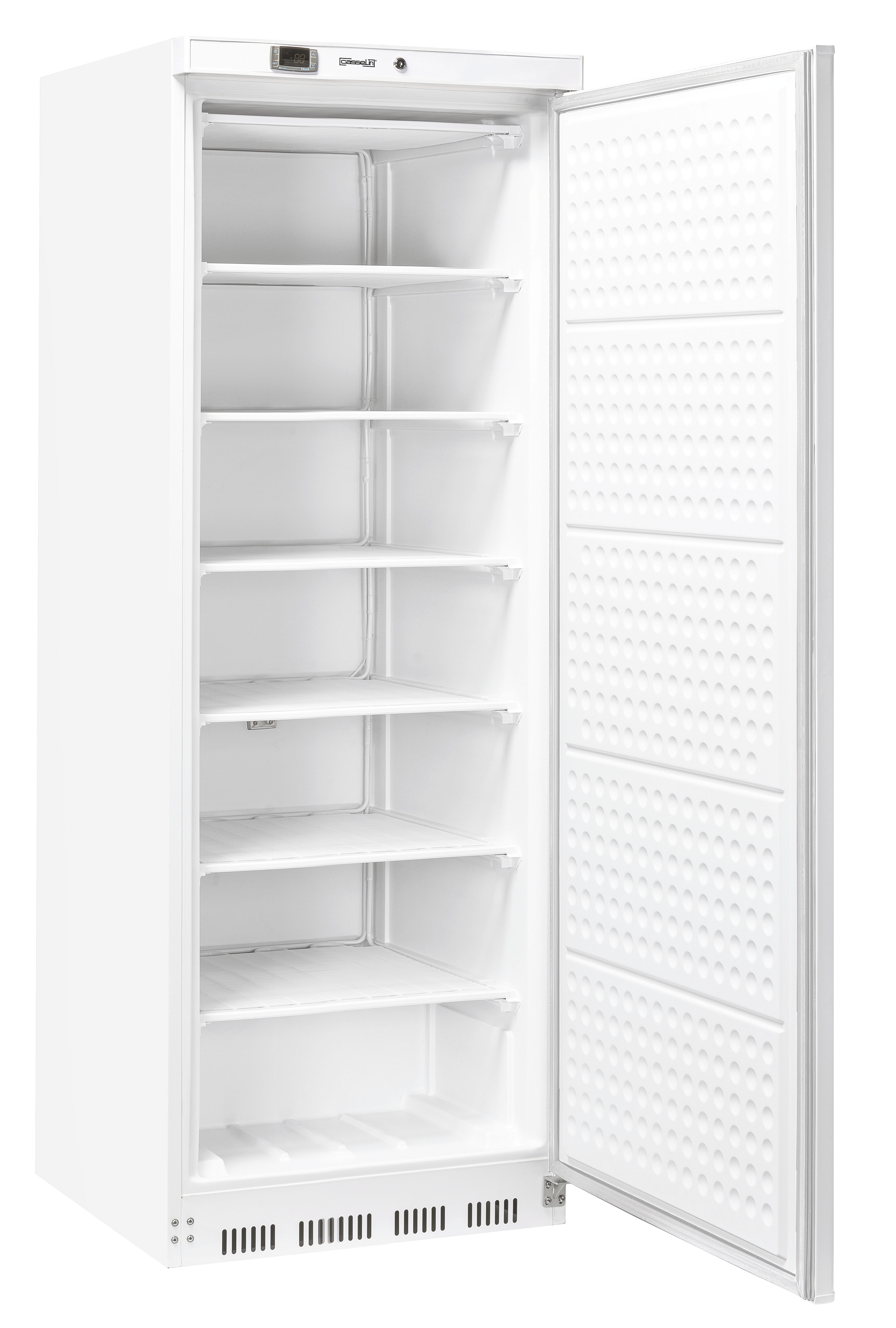 - Froid statique - Dégivrage manuel - Verrouillage porte par clé - Porte à fermeture automatique - Agent moussant Cyclopentane (65 mm par côté) - Porte réversible - 6 étagères fixes à évaporateur - Thermostat digital - Température réglable de -22°C à -18°C - Classe climatique : 4 - Capacité net : 303 L - Capacité commerciale : 400 L - Fluide réfrigérant : R 290 - Puissance : 400 W / 230 V - Dimensions : L 600 x P 685 x H 1 890 mm - Poids : 60 Kg