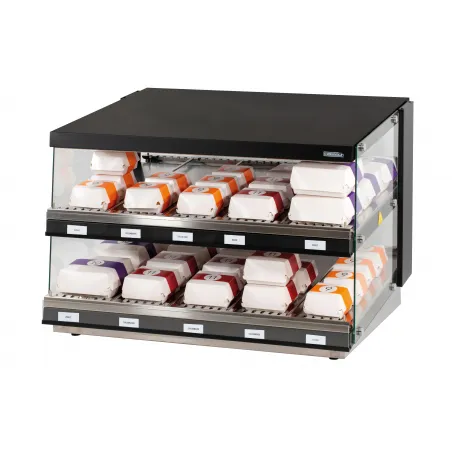 - Acier inoxydable peint à l'époxy en noir - Plan de stockage incliné - Étagère chauffante par résistance indépendante - Température sous résistances de 30°C à 90°C - Réglage de la puissance de chauffe par thermostat - Réglage de la largeur des couloirs - Puissance : 1 160 W / 230 V - Dimensions : L 953 x P 700 x H 691 mm - Poids : 49 Kg