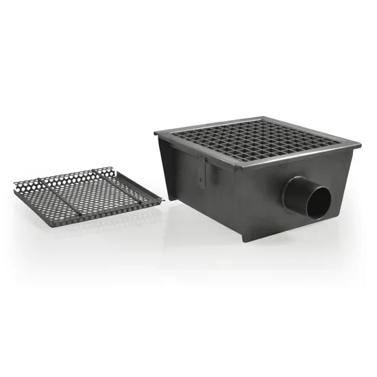 Caniveau avec caillebotis, sortie horizontale ø 63 mm et filtre carré, 1050x300x150 mm VIRTUS GZZ005