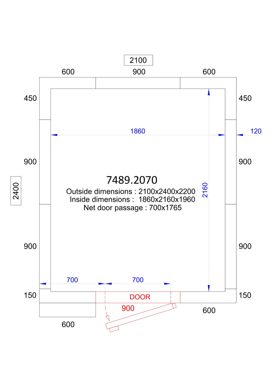 | Ouverture libre des portes lxh (mm) |