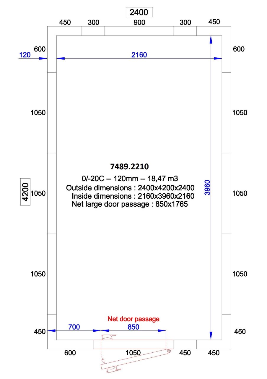CHAMBRE FROIDE POSITIVE/NEGATIVE 2400x4200x2400 - 120 MM *TRANSPORT SUR DEMANDE*
