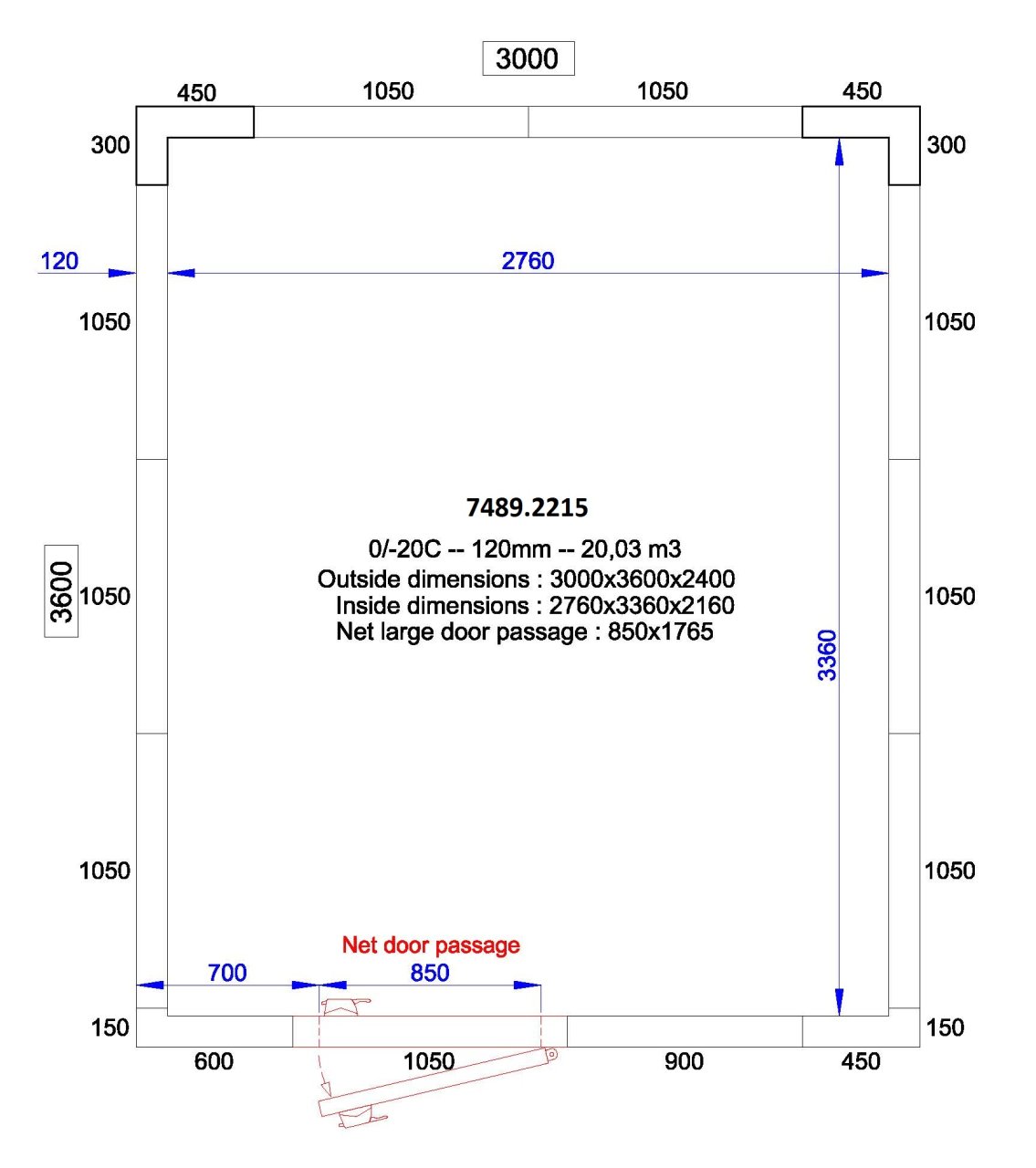 CHAMBRE FROIDE POSITIVE/NEGATIVE 3000x3600x2400 - 120 MM *TRANSPORT SUR DEMANDE*