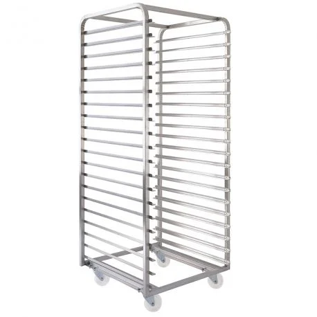 Fabriqué tout en acier inoxydable, robuste et mobile grâce à ses 4 roues dont deux avec freins, cette échelle de service 20 niveaux permet de transporter et/ou stocker vos plaques et grilles de cuisson au format Euronorm (600x800mm) en toute facilité conformément aux normes alimentaires HACCP.