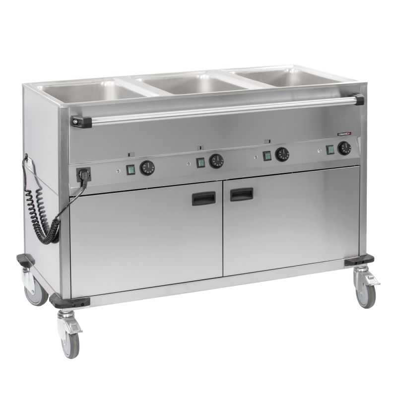 Chariot bain-marie à eau 3 x GN1/1 soubassement chauffage horizontal CASSELIN CCBM3CH