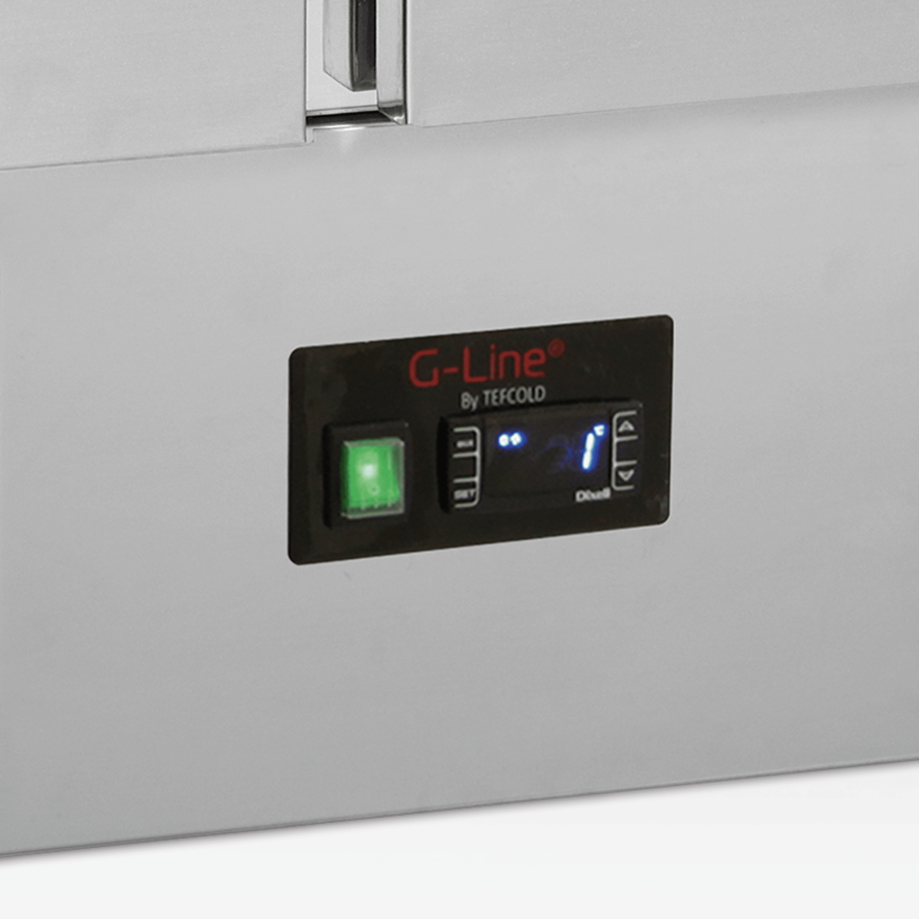 Le rapport qualité/prix des comptoirs pour saladette de la gamme G-Line est idéal pour les cuisines à forte activité. Cette saladette présente des placards aux dimensions GN1/1 ainsi que des tablettes réglables pour une utilisation optimale. La saladette est compatible avec les bacs gastro 1/6, 1/3 et 1/9 de 150 mm de profondeur max. Le groupe de réfrigération se trouve sous la saladette, et non sur le côté : cela permet de gagner de la place et de pouvoir l'utiliser sans difficulté dans une petite cuisine.