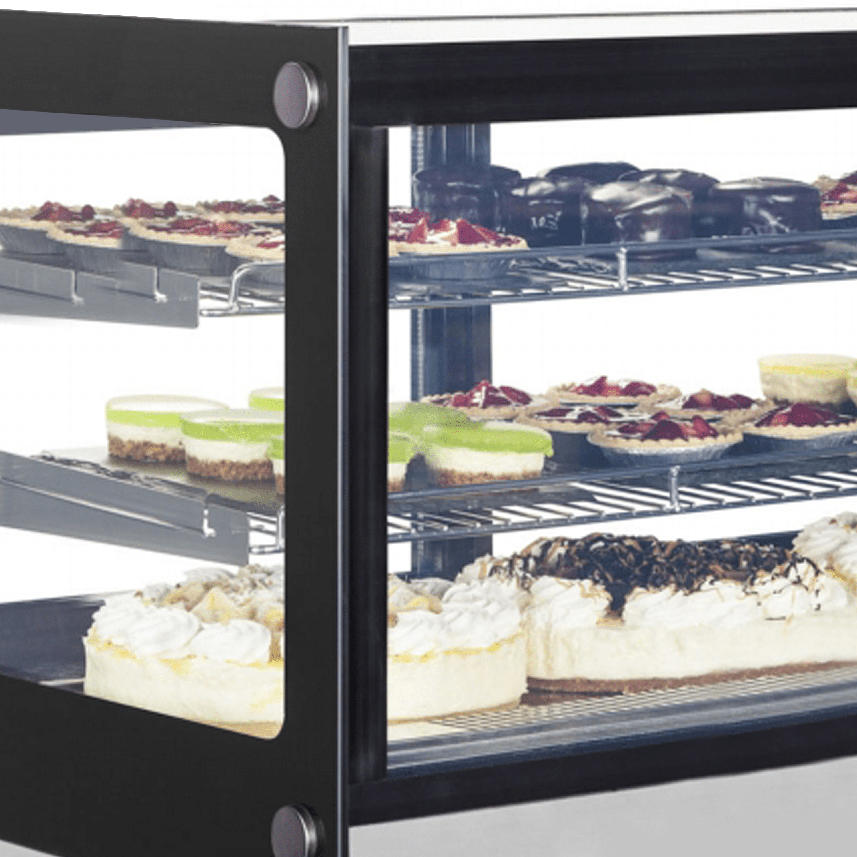 Cette armoire vitrée réfrigérée avec façade vitrée plane est un produit de grand qualité doté d'une finition en acier inoxydable et de double vitrage. De par son petit format, ce modèle constitue une solution idéale sur un comptoir où il pourra présenter une sélection de pâtisseries destinées à susciter l'envie chez le client. Il est équipé de portes coulissantes à l'arrière offrant un accès facile au contenu. Cette vitrine est livrée avec des clayettes fixes et un éclairage LED pour une présentation optimale des produits.