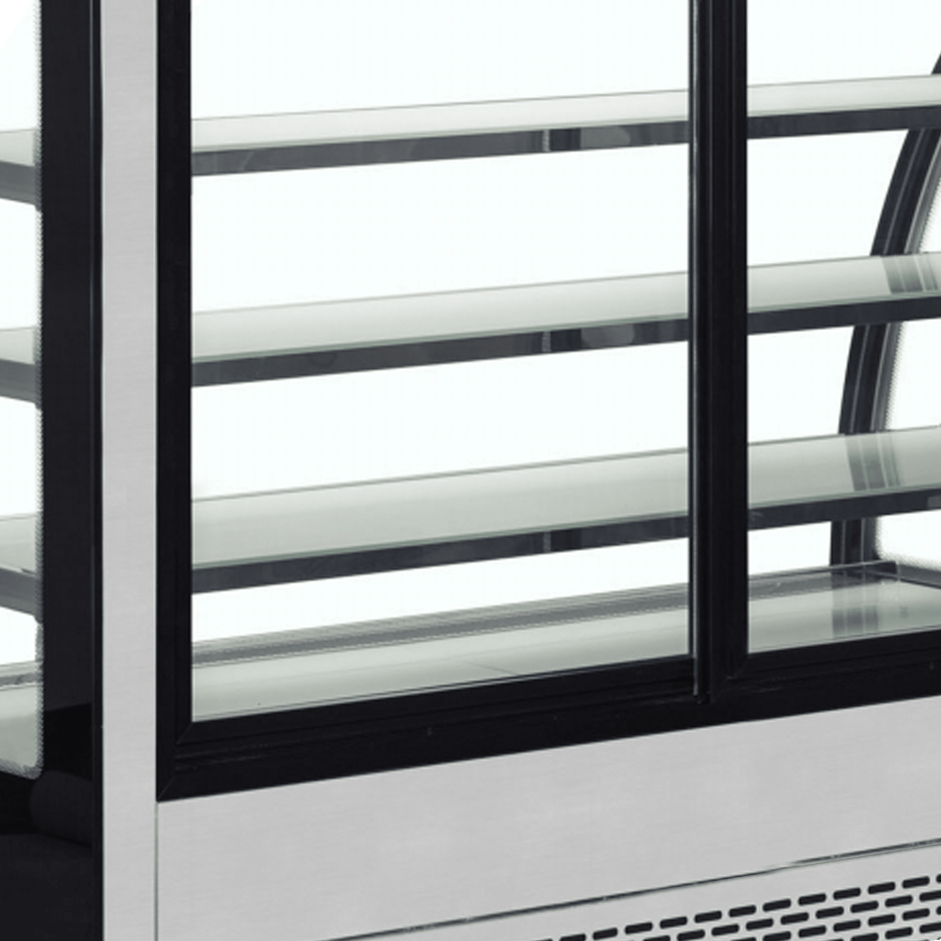 La gamme LPD regroupe toutes nos vitrines réfrigérées haut-de-gamme. Les différents modèles sont en matériaux de qualité et présentent des caractéristiques clés comme une façade anti-buée, du double vitrage pour réduire la consommation énergétique et les coûts d'exploitation, et un éclairage LED sous chacune des tablettes en verre dépoli. La vitrine réfrigérée est équipée d'un système de froid ventilé préservant la fraîcheur des aliments, pâtisseries et gâteaux, ainsi que de portes coulissantes à l'arrière facilitant le remplissage et le service. La gamme LPD est disponible en plusieurs tailles et propose également un modèle avec vitrine de façade plane.