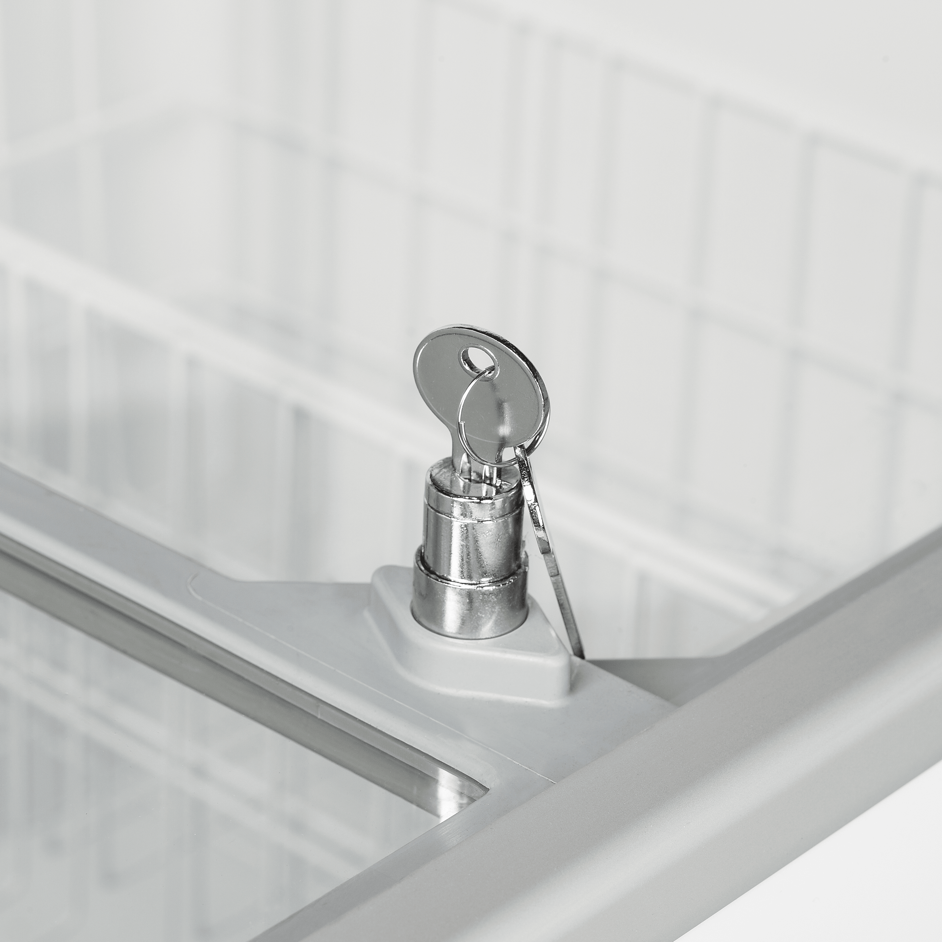 Toutes les versions sont dotées de couvercles vitrés à clé pour plus de sécurité.