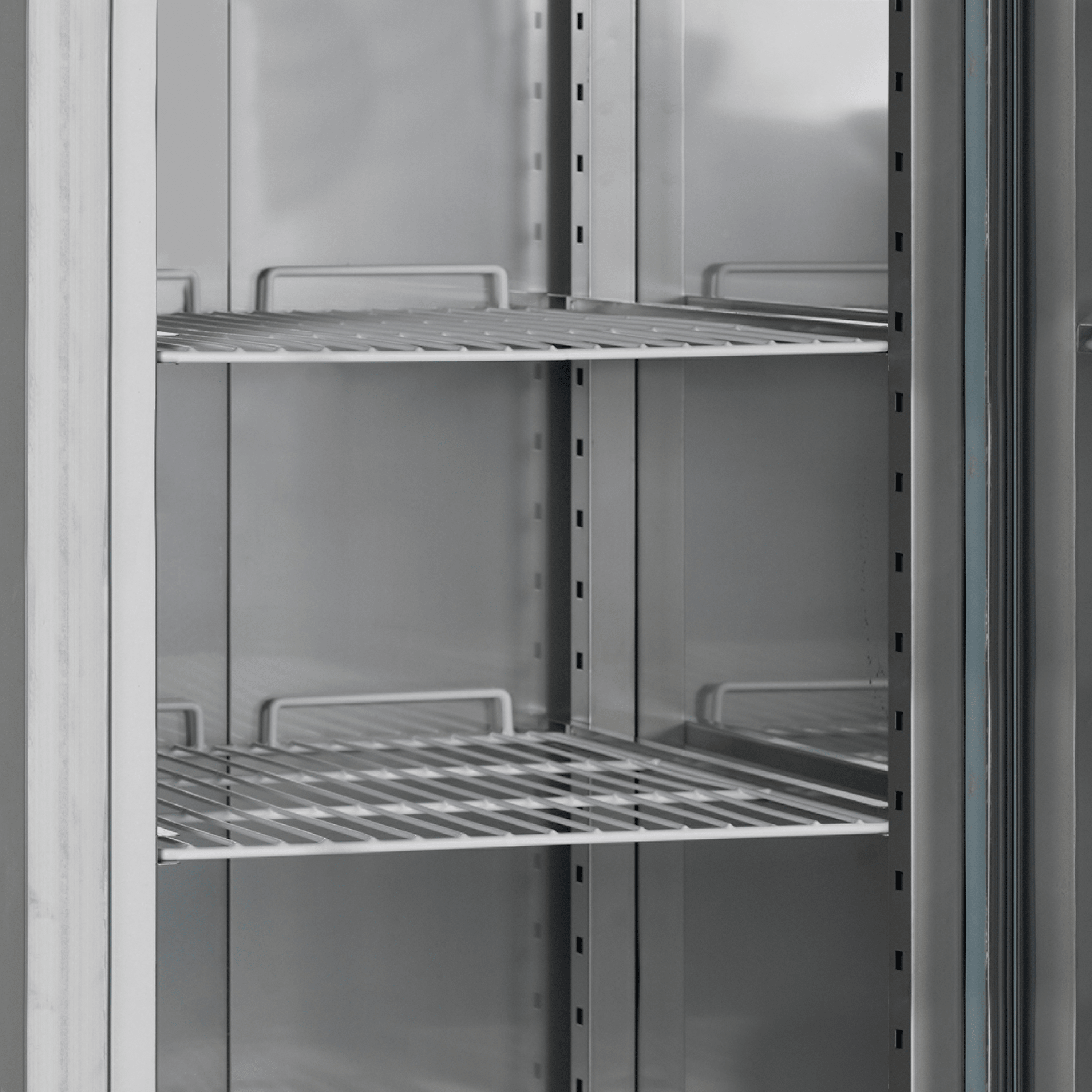 Ce modèle est doté de tablettes réglables au format GN2/1, et les portes s'ouvrent à 105 degrés pour faciliter les accès et le chargement.