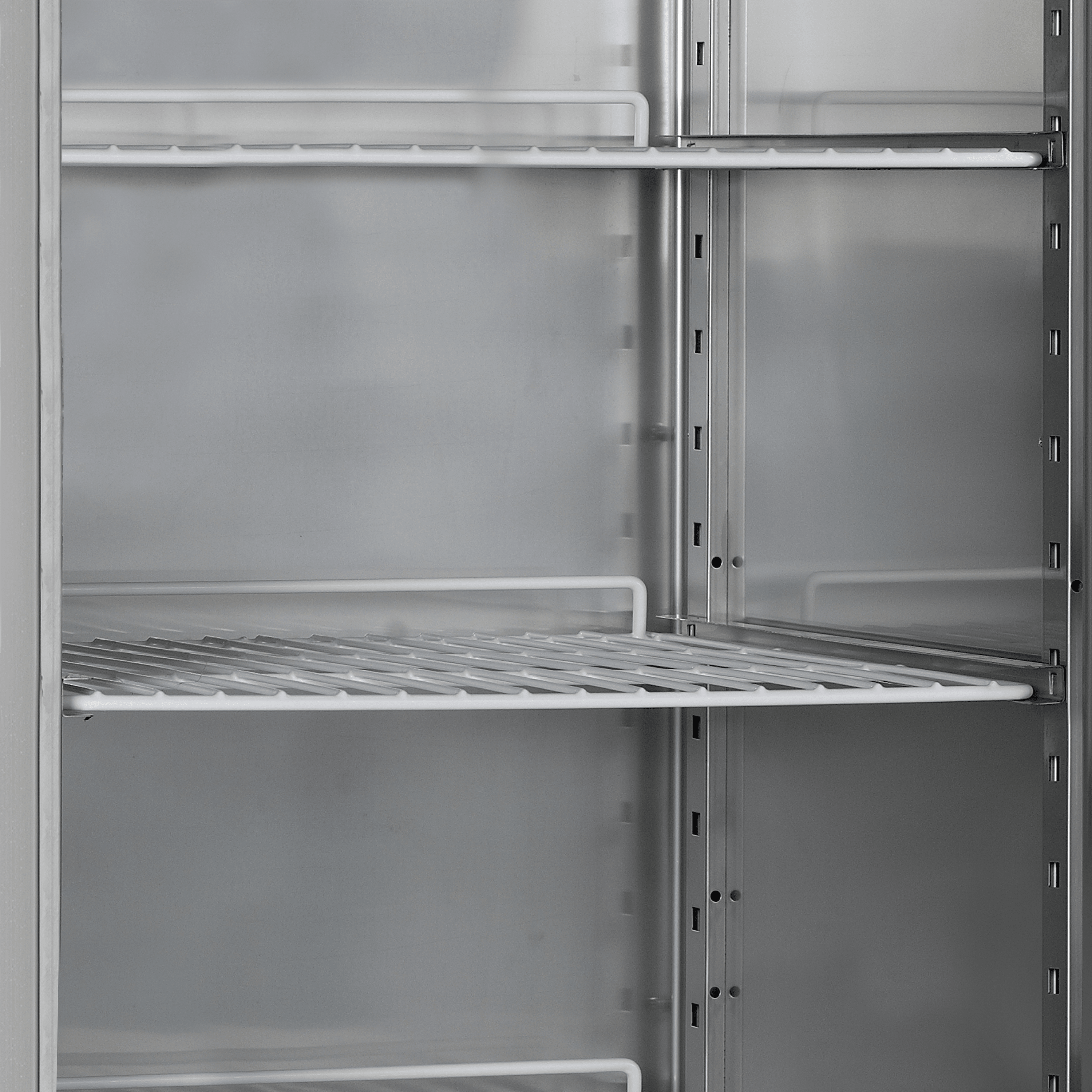 En termes de mobilité, le TEFCOLD RF505 est équipé de roulettes, facilitant son déplacement dans votre cuisine. Avec un poids net de 135 kg, ce congélateur est robuste tout en restant pratique. Sa dimension extérieure de 680 x 700 x 2010 mm lui permet de s'intégrer aisément dans votre espace de travail sans compromettre la capacité de stockage.