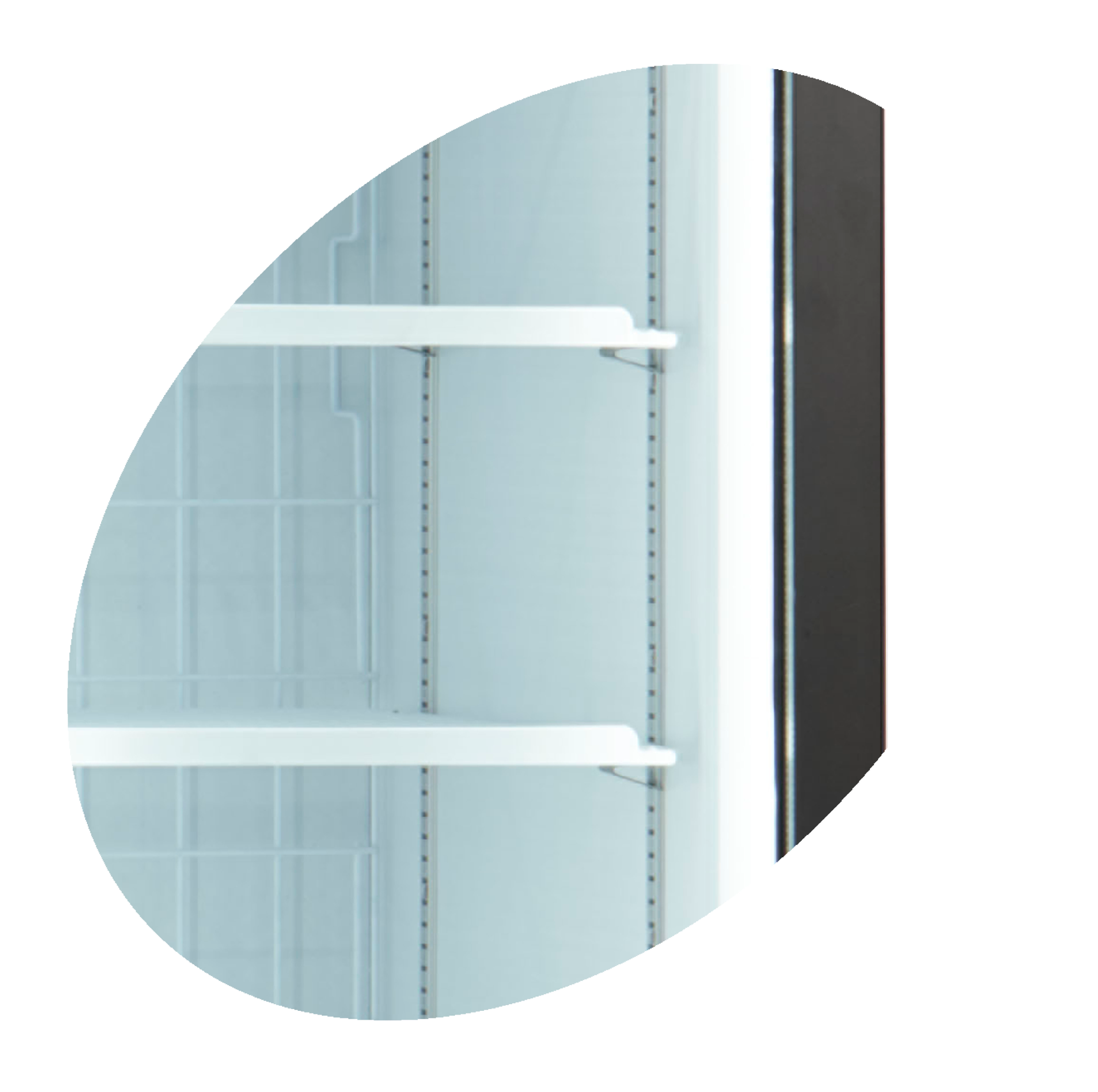 Notre congélateur réfrigéré 3 portes avec caisson UFSC1600GCP-P est un excellent choix pour les magasins souhaitant tirer le meilleur parti d'un espace limité. Il est doté de deux systèmes de réfrigération distincts pour les limiter les conséquences d'un problème sur l'un des systèmes. En plus du triple vitrage, l'appareil est équipé d'un cordon chauffant autour des portes, de 2 ventilateurs internes et d'un système d'ouverture de porte amélioré pour optimiser la réfrigération. Les portes vitrées, les tablettes, l'éclairage LED dans les portes, et la finition en général ont été améliorés afin d'optimiser la présentation des produits. Les tablettes sont réglables pour plus de souplesse dans la présentation de produits de taille différente. Vous pouvez par exemple employer différentes hauteurs de tablette pour chaque porte au lieu d'une seule étagère par niveau, pour plus de souplesse dans la présentation des produits. Les étagères centrales font 535 mm de large. Les étagères latérales font 465 mm de large. Ce congélateur 3 portes convient bien aux supermarchés, épiceries et stations-services. Le modèle UFSC1600H-P est également disponible en version réfrigérateur : FSC1600H-P.