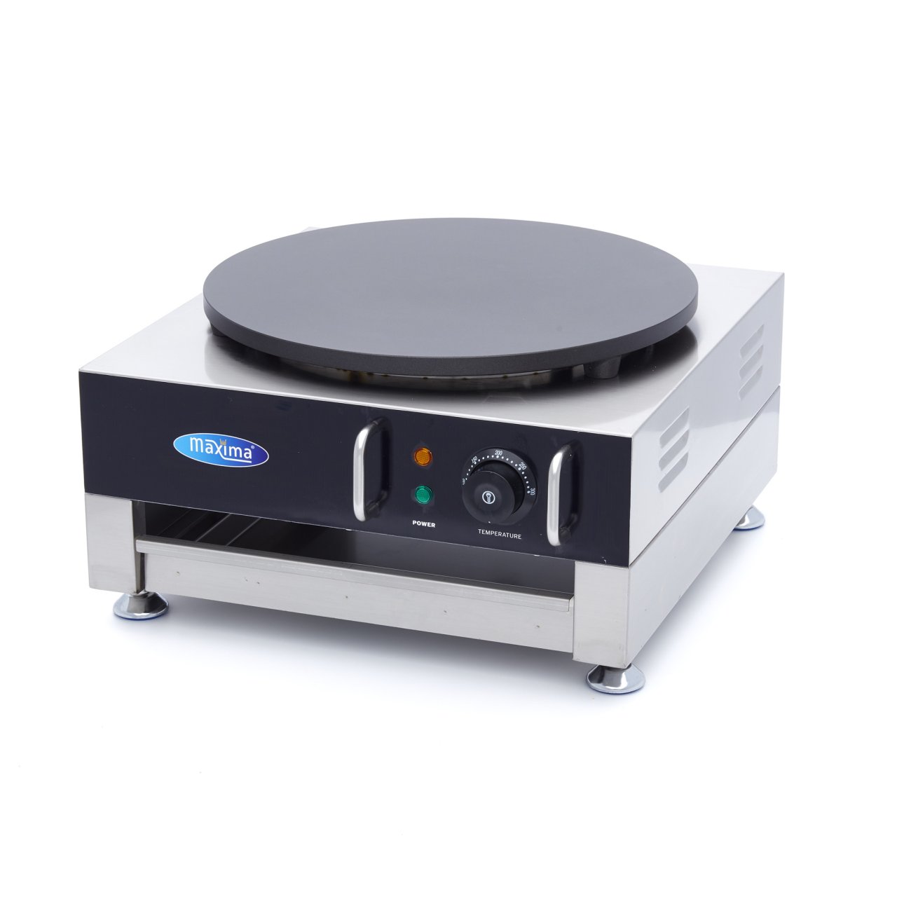 Les crêpes fraîches faites maison sont idéales pour le petit-déjeuner, le déjeuner, le dessert ou comme en-cas facile à préparer. La taille compacte de la crêpière vous permet de l'utiliser non seulement dans votre cuisine de restauration, mais aussi dans un food truck ou sur un stand de marché lors d'événements. Un tiroir de rangement se trouve sous la plaque de cuisson des crêpes, où vous pouvez conserver les crêpes que vous avez préparées. La plaque de cuisson offre un transfert de chaleur optimal pour une production rapide des crêpes.