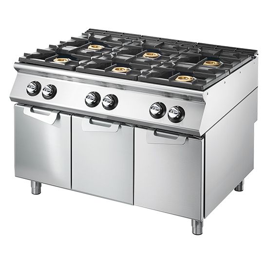 Cuisinière à gaz à 6 brûleurs sur soubassement avec portes, plateau de travail VIRTUS VS90120PCGSP