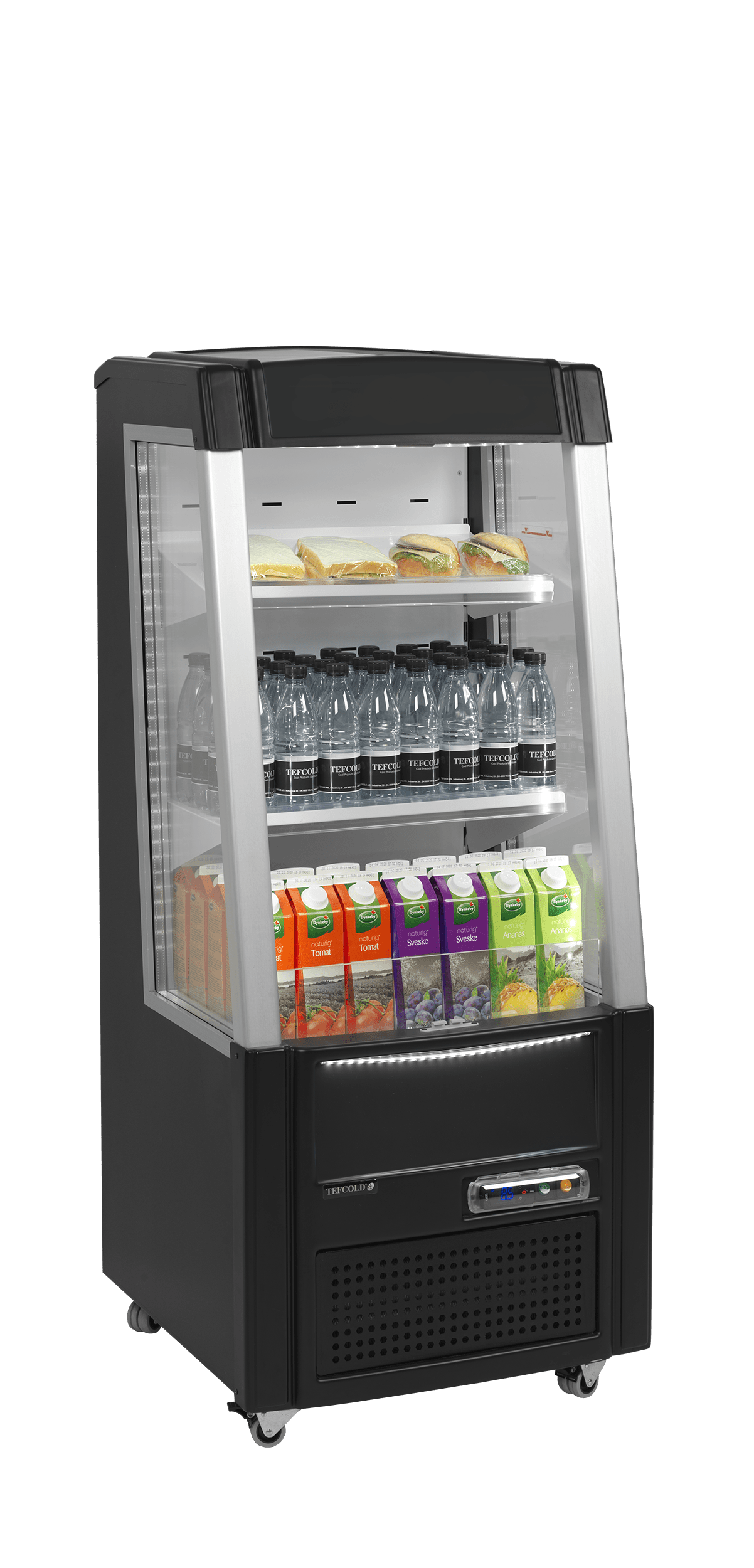 La gamme ODC est notre nouvelle gamme ouverte basse multiniveaux. Ces vitrines réfrigérées sont idéales pour les achats impulsifs dans les supermarchés, les épiceries et les magasins où l'espace est compté. Les côtés sont vitrés pour une présentation optimale des produits. L'extérieur est noir, l'intérieur et les tablettes sont blancs. Il est possible d'incliner les tablettes pour mieux présenter les produits et les rendre plus visibles. Le rideau de nuit progressif permet d'économiser l'énergie pendant que le magasin est fermé.