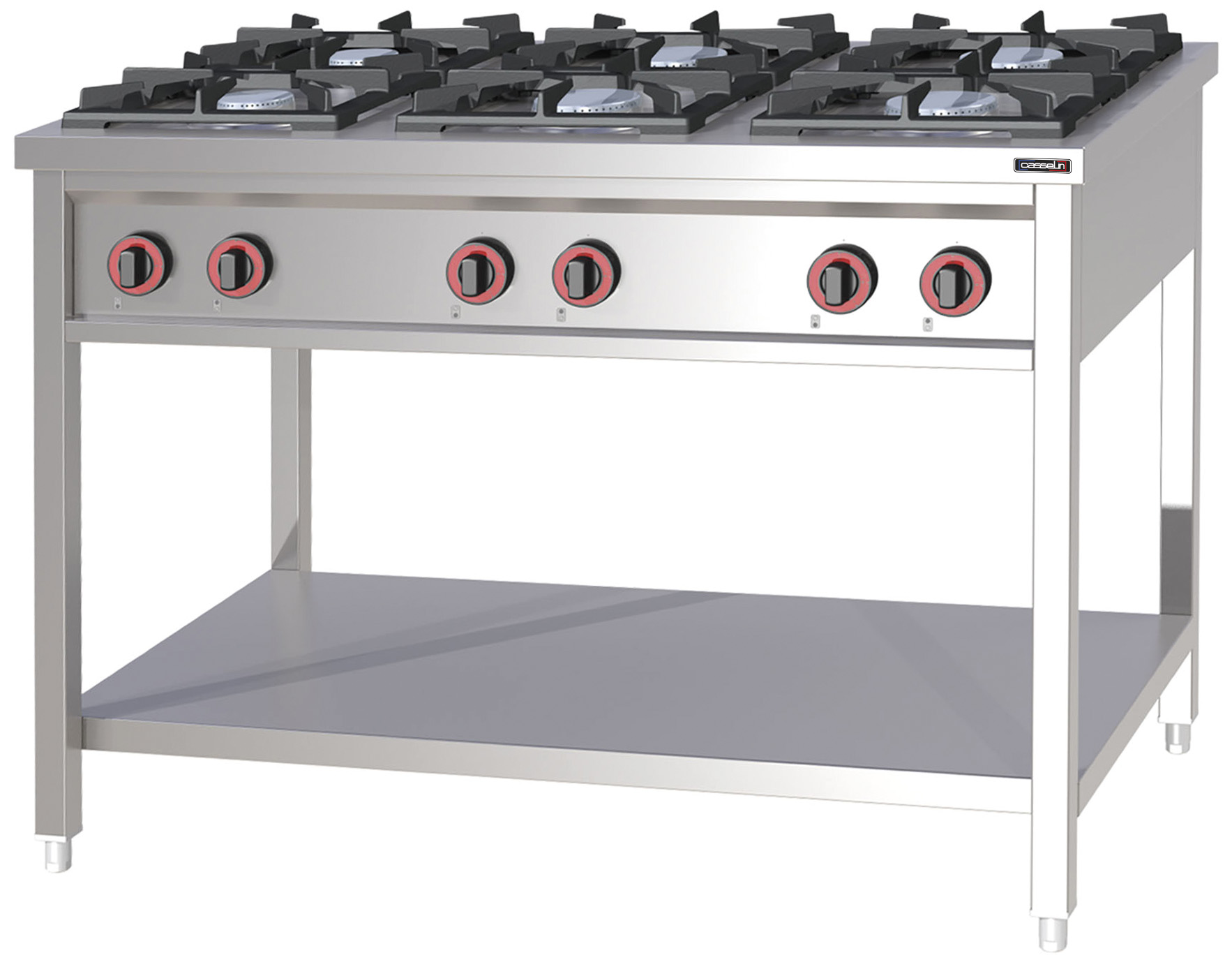 - 6 brûleurs en fonte (4 kW, 4 kW, 7 kW, 7 kW, 7 kW, 7 kW)