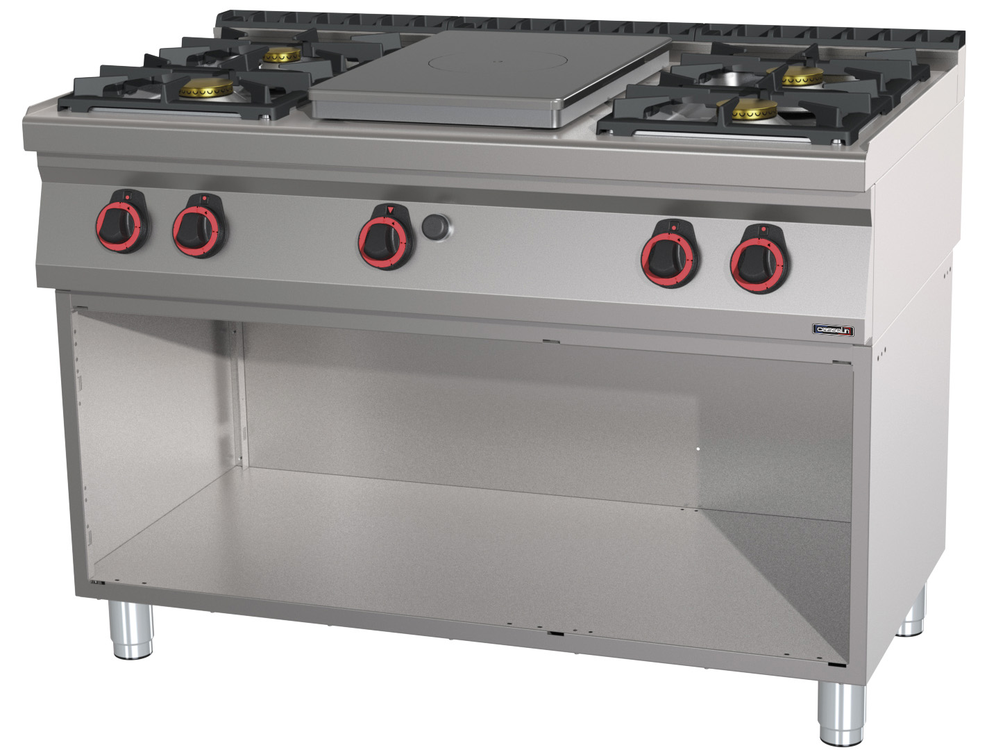 Fourneau gaz 4 feux + 1 plaque coup de feu avec soubassement 120
