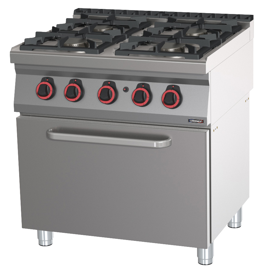 Fourneau gaz 4 feux avec four à gaz GN 2/1 80
