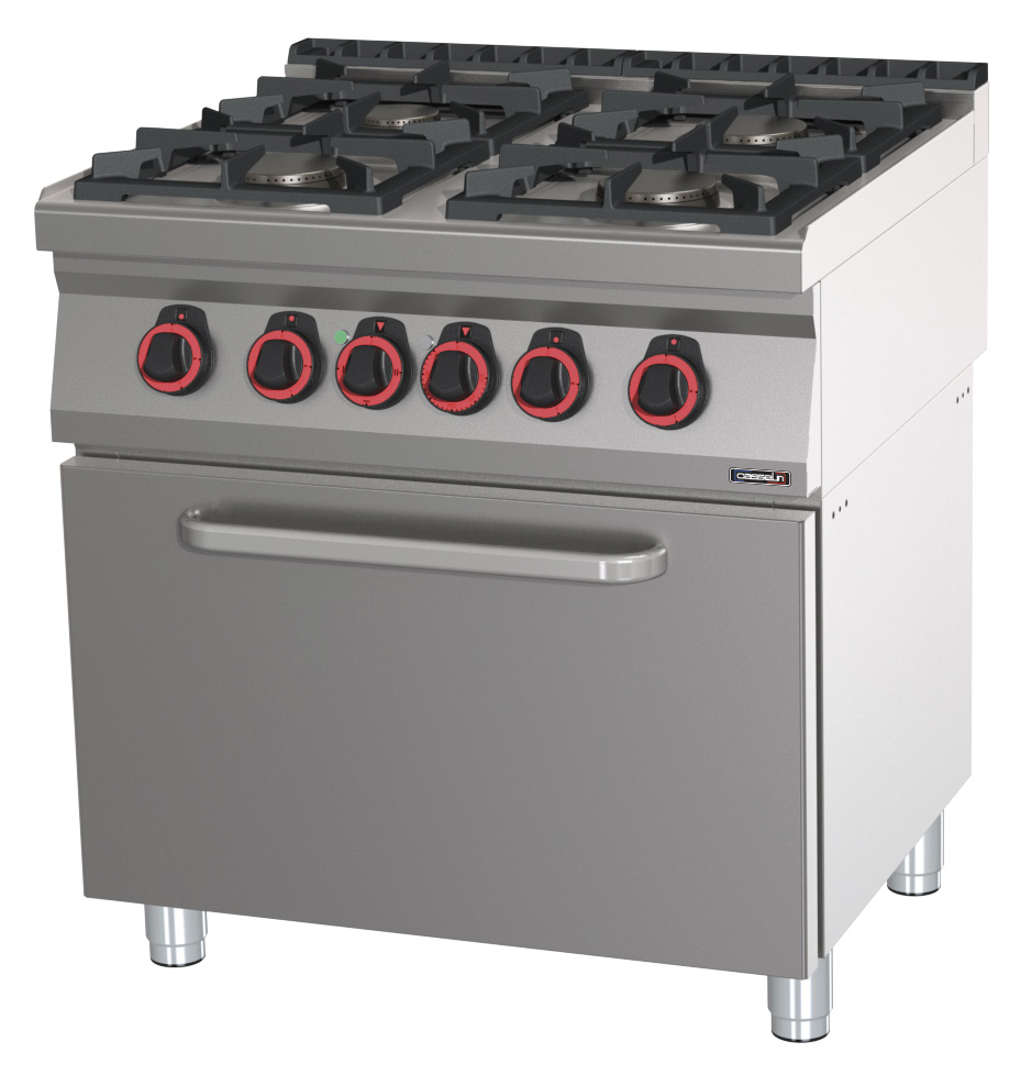 Fourneau gaz 4 feux avec four électrique statique GN 2/1 80