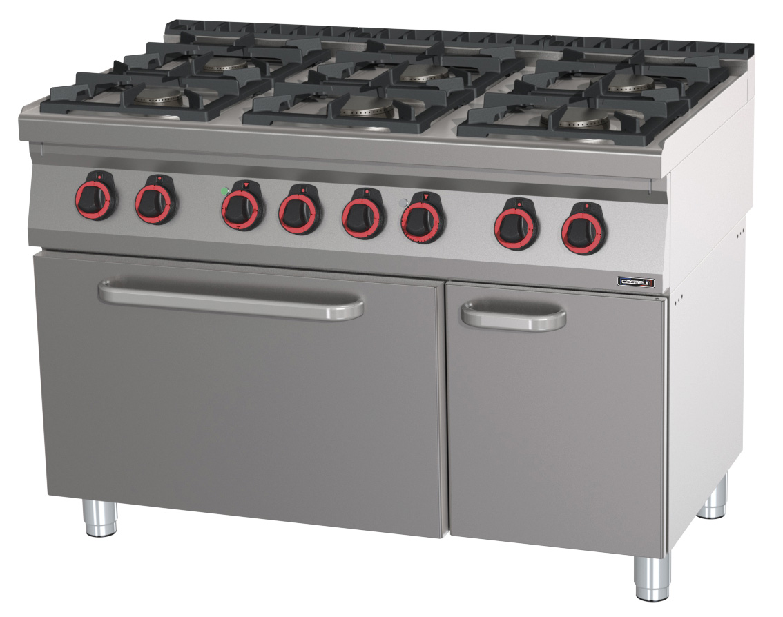 Fourneau gaz 6 feux avec four électrique statique GN 2/1 120