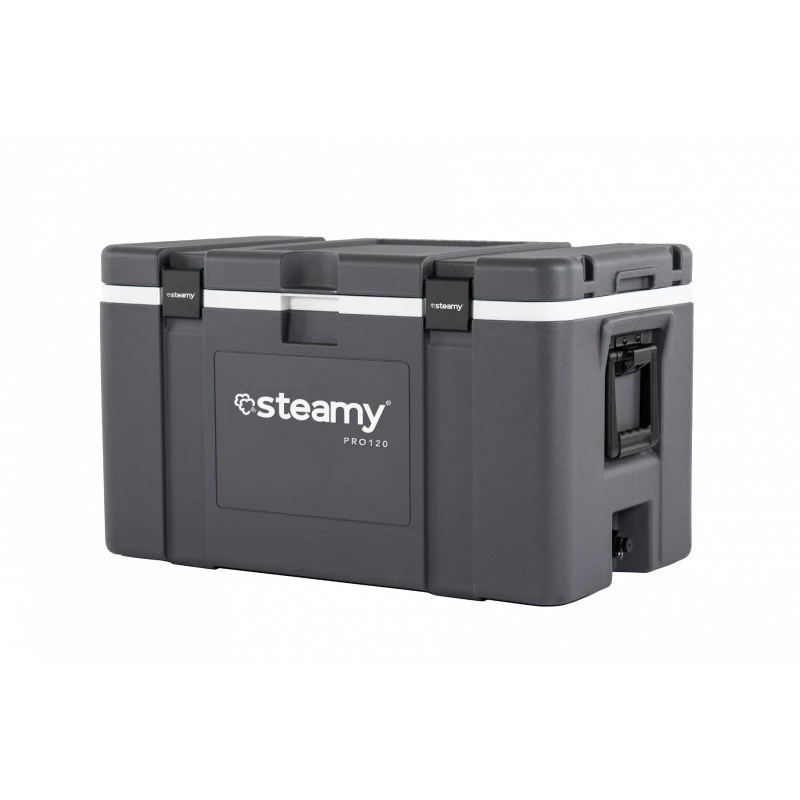 La Steamy Pro 120 d'une capacité de 120 litres. Que vous organisiez un grand événement ou que vous fassiez un long voyage, cette glacière est à la hauteur. Avec son énorme capacité de stockage, elle offre de l'espace pour toutes vos boissons, snacks et autres, tandis que l'isolation de haute qualité garantit que tout reste à la bonne température.