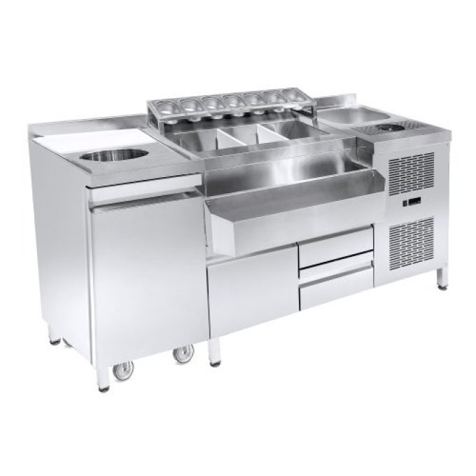 Chariot bain-marie à eau 3xGN 1/1 avec soubassement chauffant horizontal