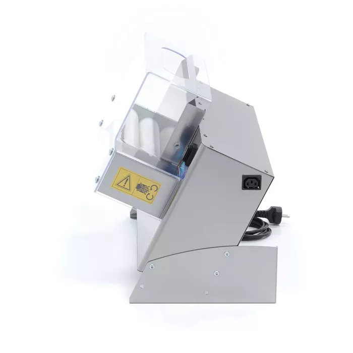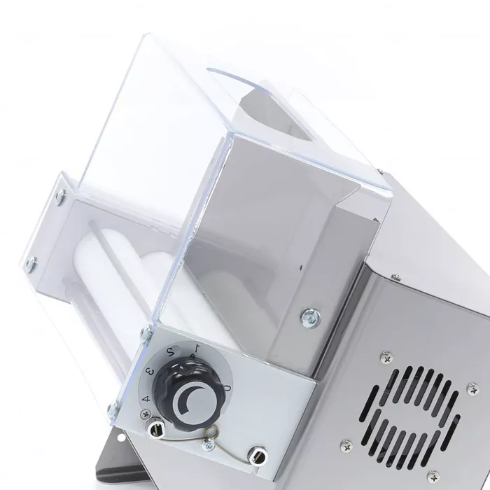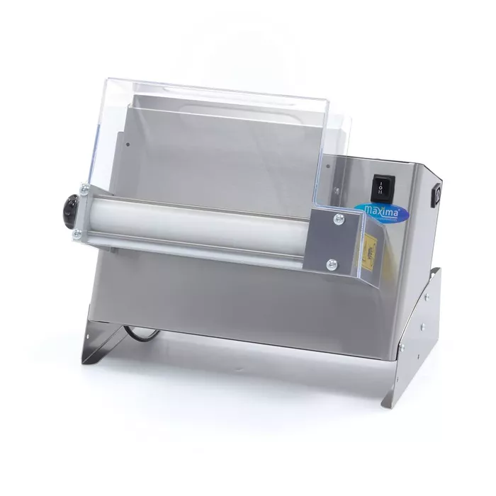 Pour travailler en toute sécurité avec ce rouleau à fondant, il est équipé d'un couvercle de protection en plastique transparent et d'un interrupteur de sécurité.