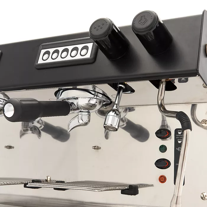 La machine à café est équipée d'un double piston robuste avec un double bec et un filtre porta.