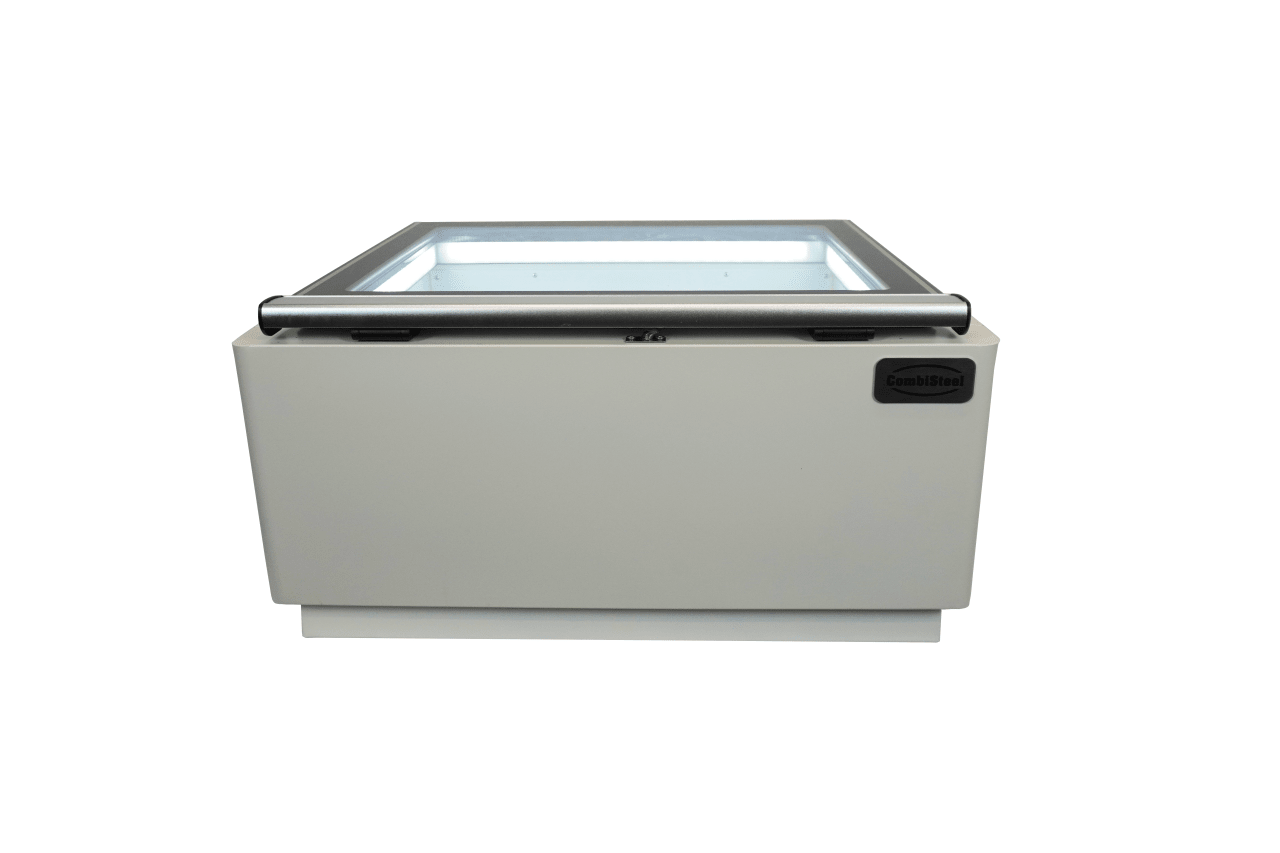 MODÈLE DE TABLE VITRINE À CREME GLACÉE BLANC S'OUVRE DU CÔTÉ FONCTIONNEMENT