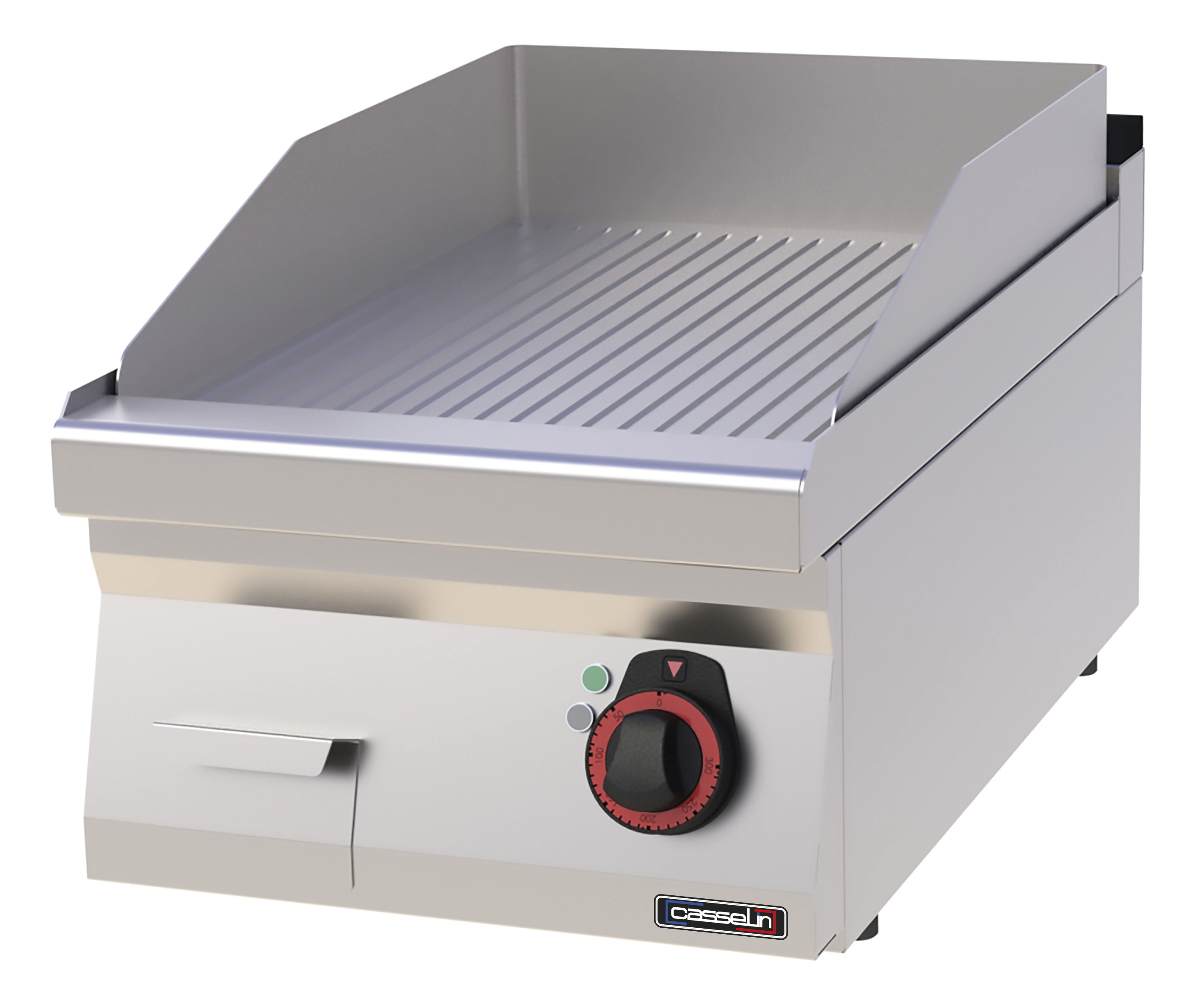 - Plaque supérieure en acier inoxydable AISI 304 - Structure en acier inoxydable AISI 430 - Thermostat réglable de 50°C à 300°C - Plaque en fonte d'acier rainurée - Dimensions de la plaque : L 400 x P 510 mm - Epaisseur de la plaque : 12 mm - Bac de récupération des graisses - Puissance : 4 500 W / 400 V - Dimensions : L 400 x P 700 x H 330 mm - Poids : 36 Kg