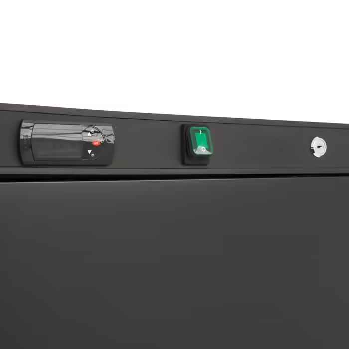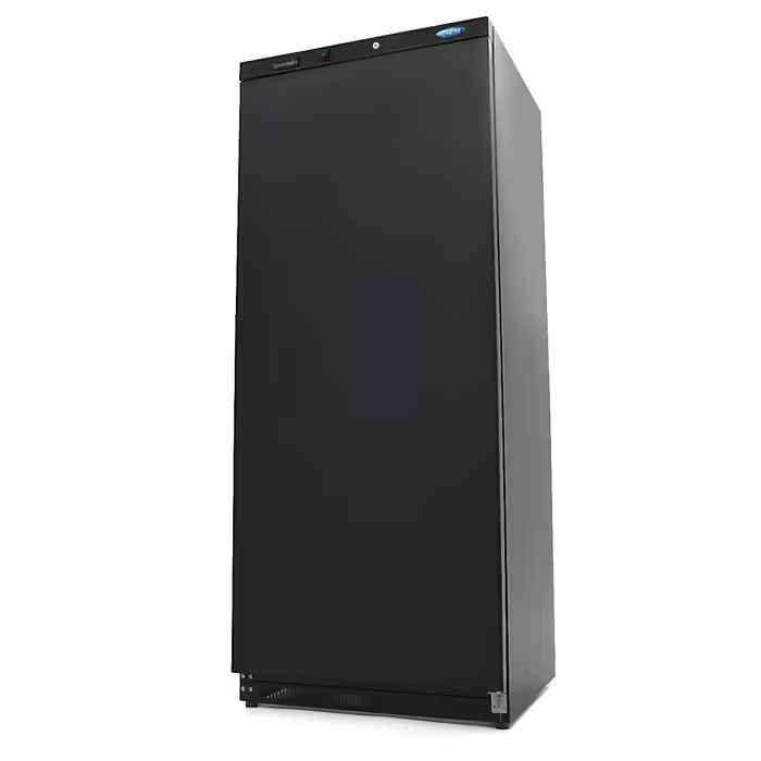 Ce réfrigérateur professionnel noir est disponible en blanc et a une capacité brute de 600 litres.