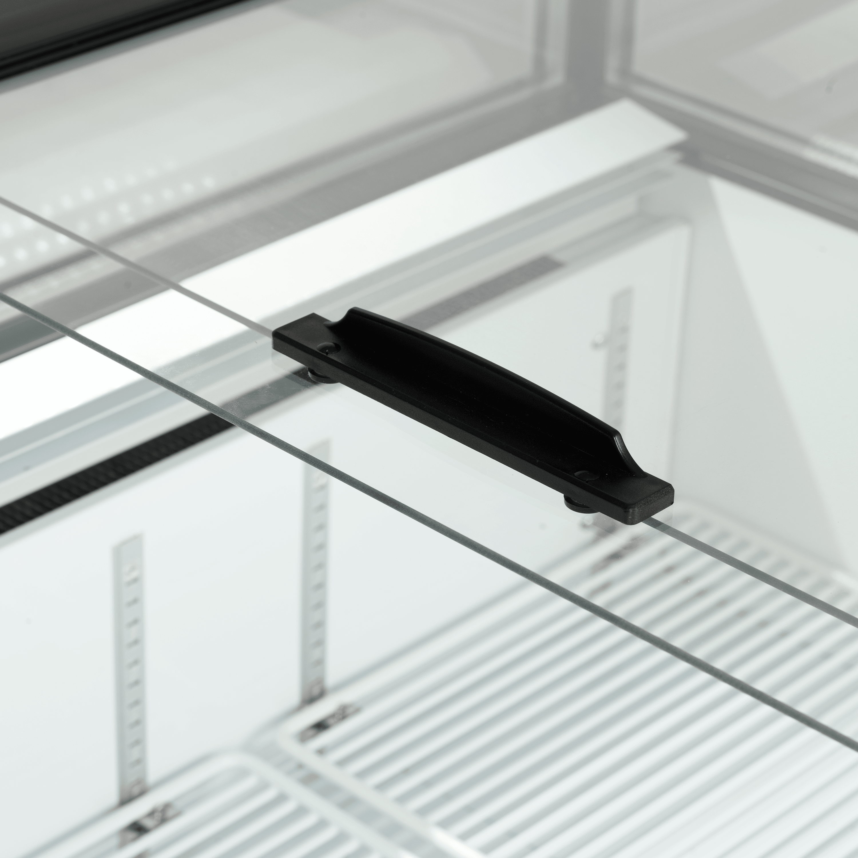 Le modèle UHD201 / Noir est une référence en matière de solutions de réfrigération flexibles pour le commerce de détail. Il est équipé de solides roulettes pour pouvoir le déplacer facilement dans le magasin sans devoir le vider. Sa capacité de stockage est très impressionnante, grâce à sa taille. Ses quatre côtés sont vitrés, tout comme ses couvercles coulissants, offrant une vue parfaite sur les produits dans toutes les directions. De plus, il peut faire du froid négatif pour les glaces pendant l'été et passer en froid positif une fois la saison terminée. Sous les côtés vitrés, on trouve une surface généreuse convenant au branding personnalisé.