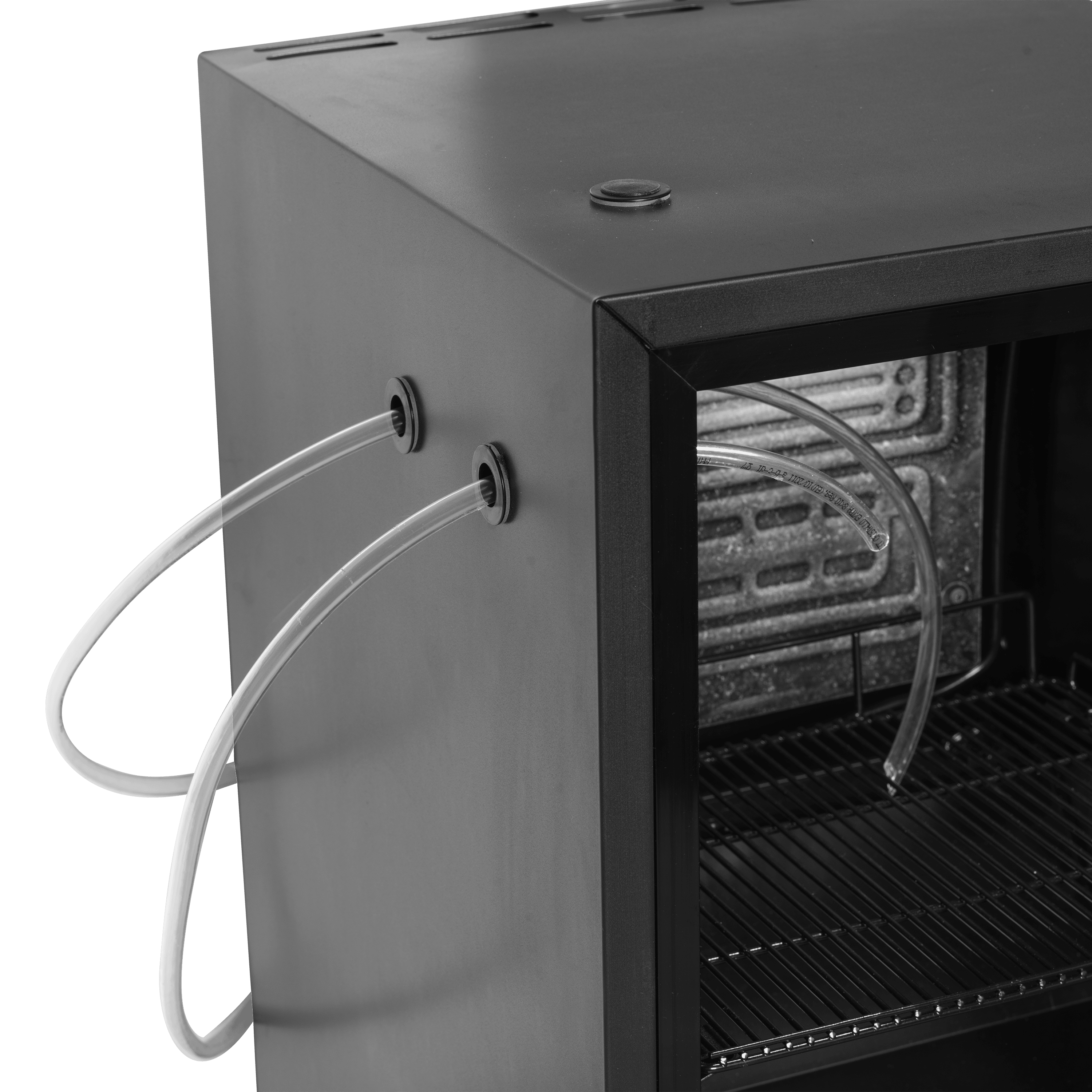 En matière de praticité, le réfrigérateur est équipé d'une porte vitrée à charnières avec fermeture automatique, permettant un accès facile et rapide à vos produits tout en offrant une excellente visibilité. Bien que ce modèle ne dispose pas d'un thermomètre intégré, il reste d'une fiabilité remarquable grâce à sa régulation mécanique.