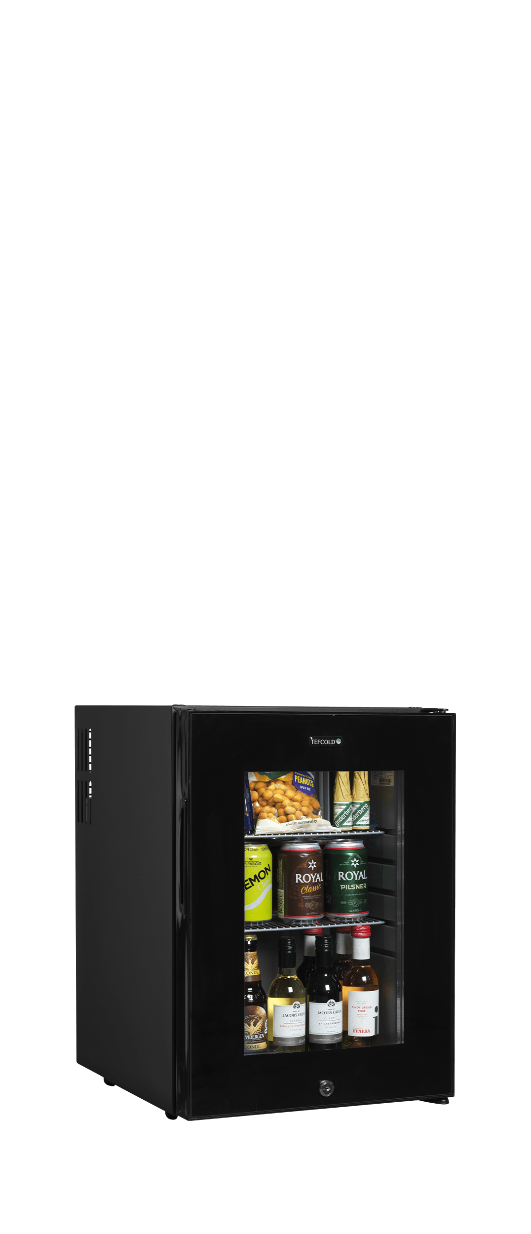 Ce mini-bar de notre gamme TM est idéal pour présenter une sélection de boissons et de produits à grignoter. La porte vitrée sans cadre est particulièrement élégante. Avec l'intérieur noir et l'éclairage LED, l'ensemble permet de réellement mettre en valeur le contenu. Ce mini-bar à absorption est parfaitement silencieux, il est certifié 0 dB(A). Il convient donc parfaitement aux chambres d'hôtel, aux bureaux ou sur un comptoir dans un espace de réception ou un petit café.