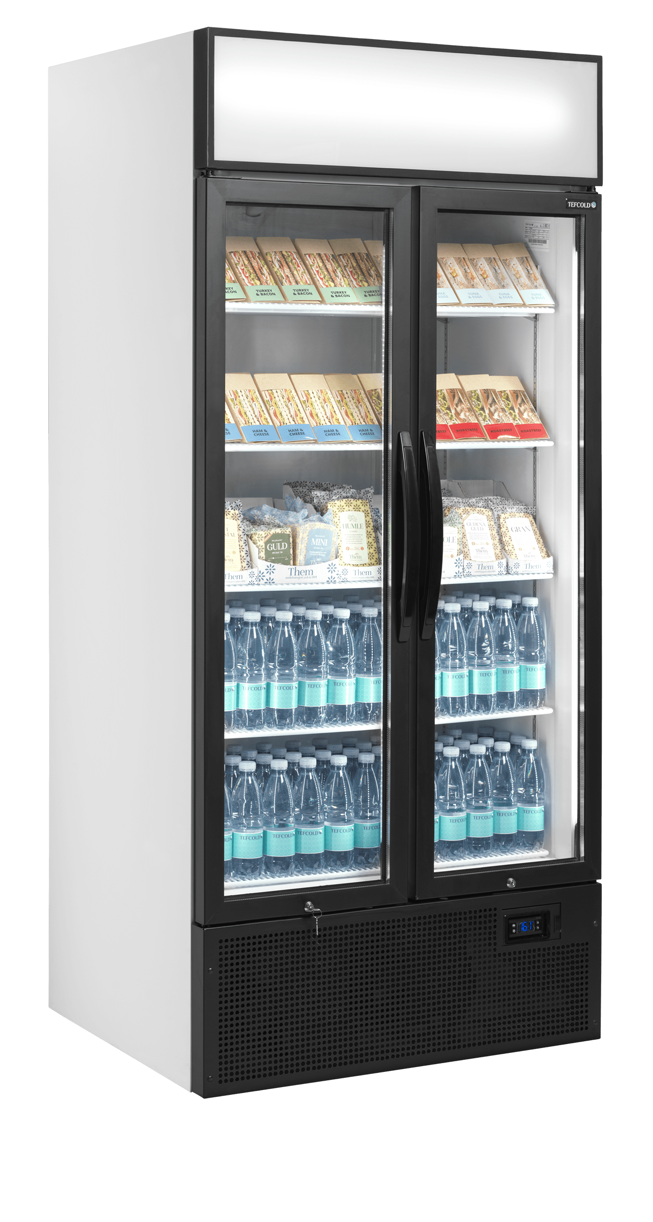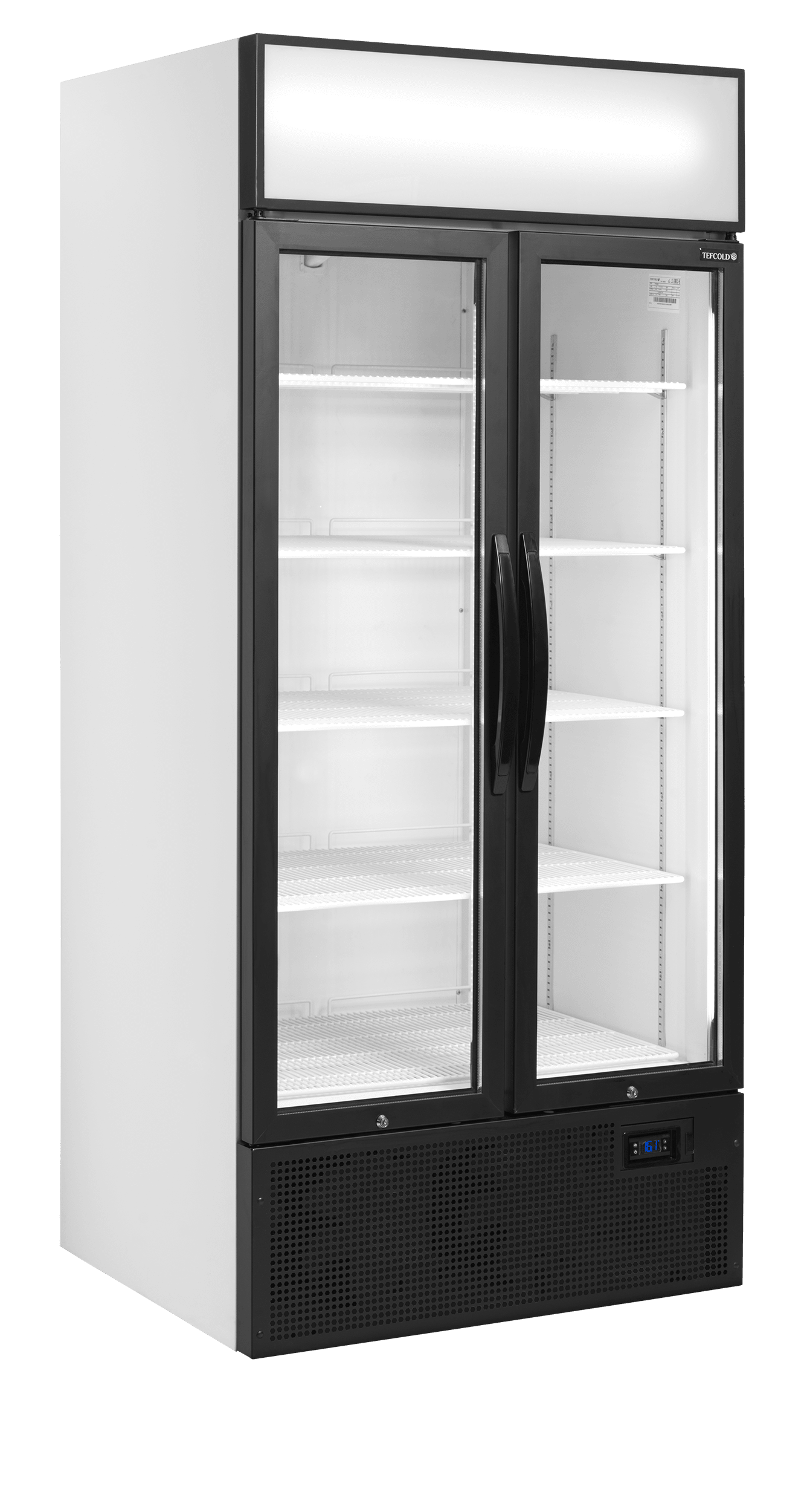 La gamme FSC est équipée d'un caisson lumineux. Un branding personnalisé attire l'œil et encourage les achats impulsifs. L'appareil maintient les boissons au froid tout en mettant les produits en valeur. Elle a été modernisée pour réduire sa consommation d'énergie de 58 % par rapport à la génération précédente. Ce modèle est proposé par défaut avec intérieur et extérieur blancs. Il est fourni avec 5 clayettes grilles réglables blanches, 2 portes battantes vitrées à fermeture automatique, 2 cordons LED verticaux dans le cadre des portes, et un caisson lumineux à LED.