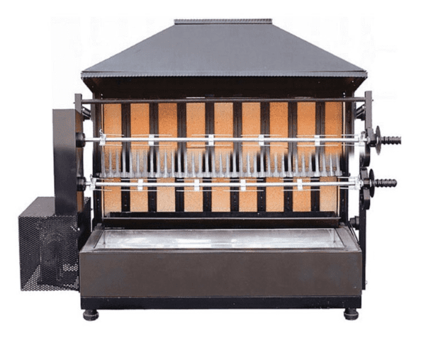 Rôtissoire à poulets au feu de bois de marque MCM avec 2 épées et une capacité de 10 poulets.
