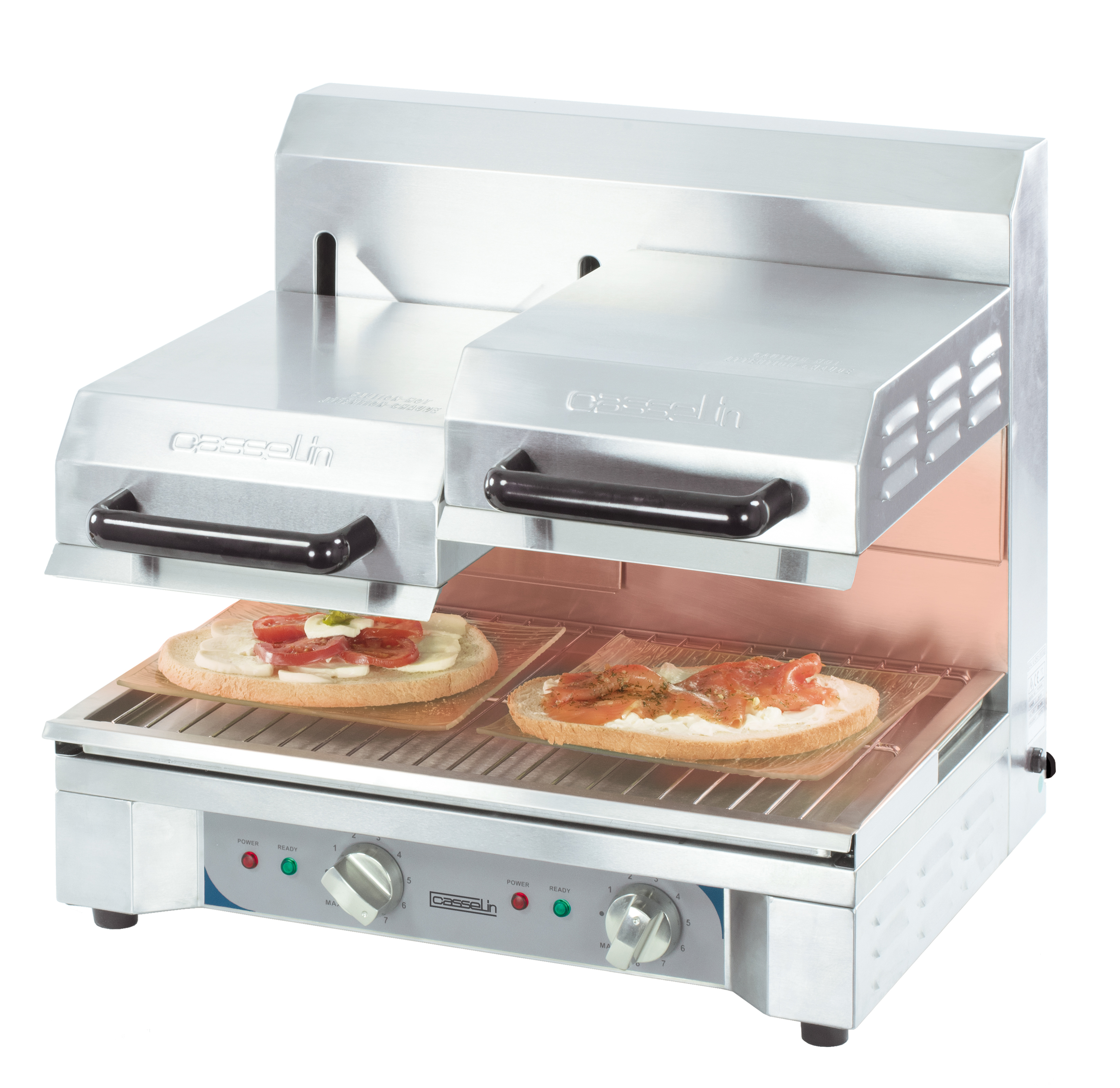 - Acier inoxydable - Résistance quartz - Positions amovibles de chauffe - Plateau inférieur amovible - Thermostats 8 niveaux de température - Thermostat de sécurité - Puissance : 2 900 W / 230 V - Dimensions : L 600 x P 540 x H 525 mm - Poids : 41 Kg > Kit de fixation murale inclus