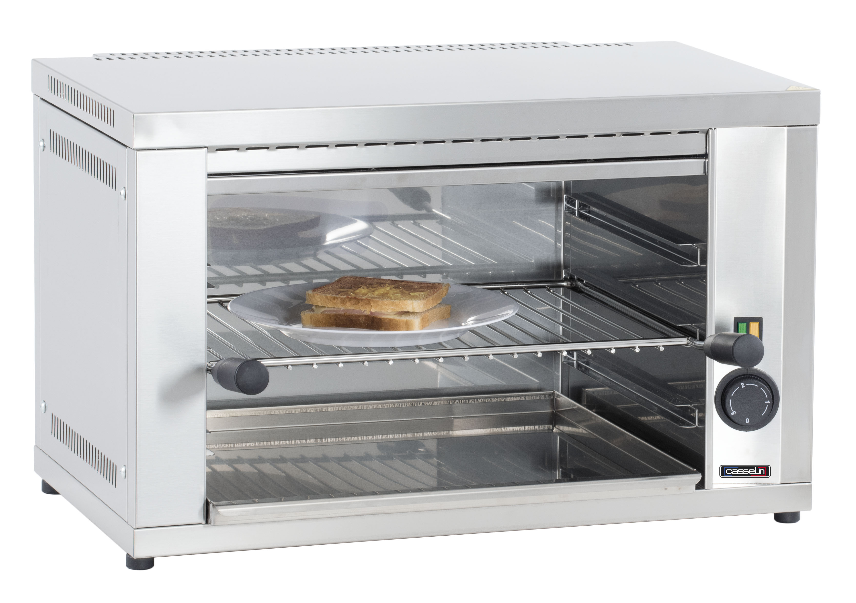 - Acier inoxydable - Thermostat réglable - Résistance en Incoly 800 - Tiroir de récupération - Hauteur de grille réglable sur 3 niveaux - Possibilité d'ouvrir la face arrière pour passe-plat - Dimensions grille : L 430 x P 310 mm - Puissance : 2 200 W / 230 V - Dimensions : L 600 x P 370 x H 375 mm - Poids : 18,8 Kg