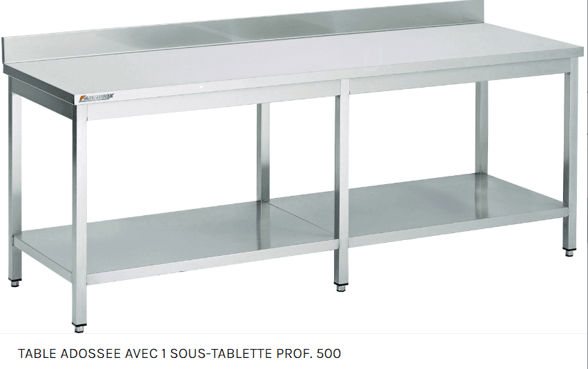 Table adossée avec 1 tablette inox AISI 430 FABRINOX