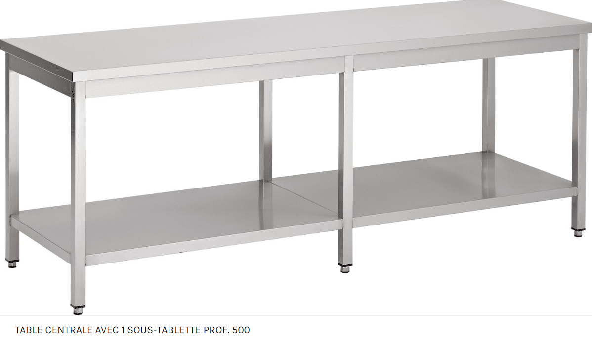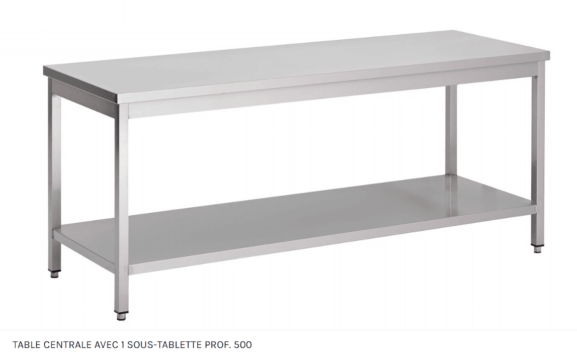 Table centrale avec tablette inferieure inox AISI 430 FABRINOX