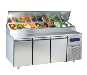 Table de préparation réfrigérée 3 portes GN 1/1, 10x GN 1/3 -2°/+8°C VIRTUS CCZ0006/F :
