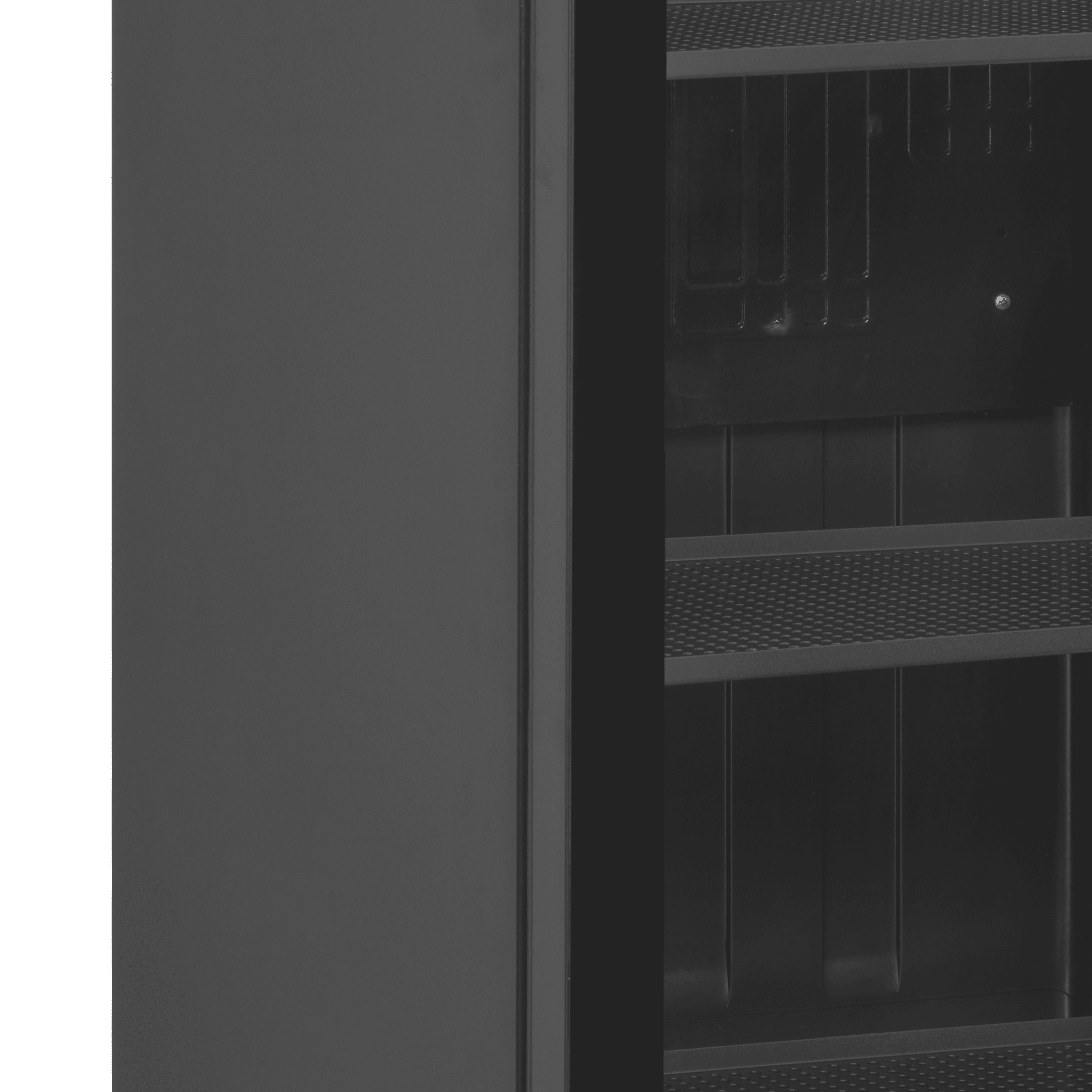 La vitrine réfrigérée SCU1425 FRAMELESS en noir est entièrement au service de vos produits. L'éclairage intérieur malin à LED est intégré aux montants de la porte et éclaire les produits par l'avant (une bande verticale de chaque côté et une bande horizontale en haut). La finition noire met en valeur les produits contenus dans l'armoire et attire le regard vers l'intérieur du réfrigérateur. La porte est dite « sans cadre », c'est-à-dire que la vitre en recouvre les bords pour une finition parfaitement homogène de la façade. Le froid ventilé assure une température homogène dans toute l'armoire et une descente en température plus rapide lors du réapprovisionnement. Cette vitrine réfrigérée permettra à vos produits de sortir du lot.