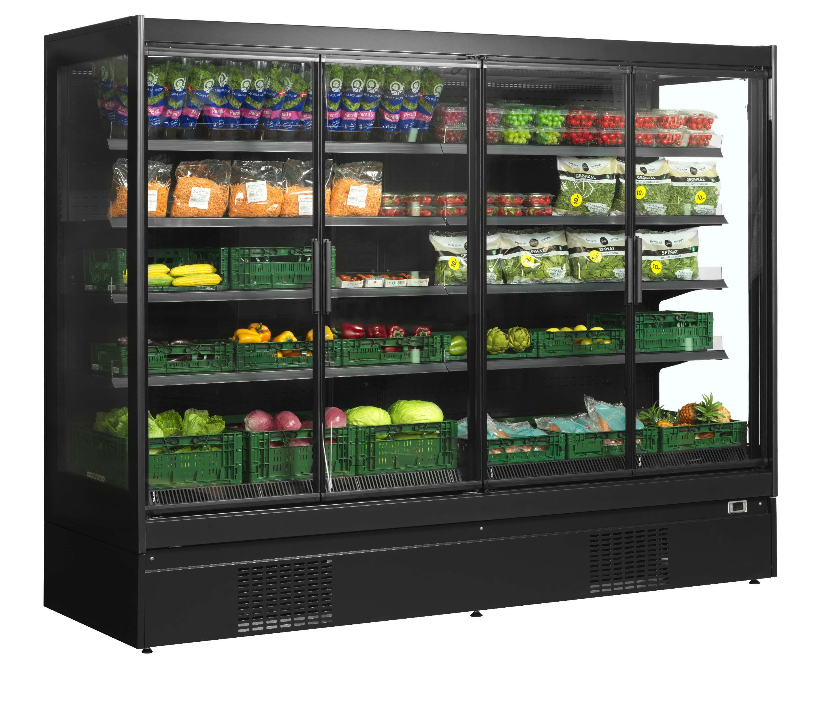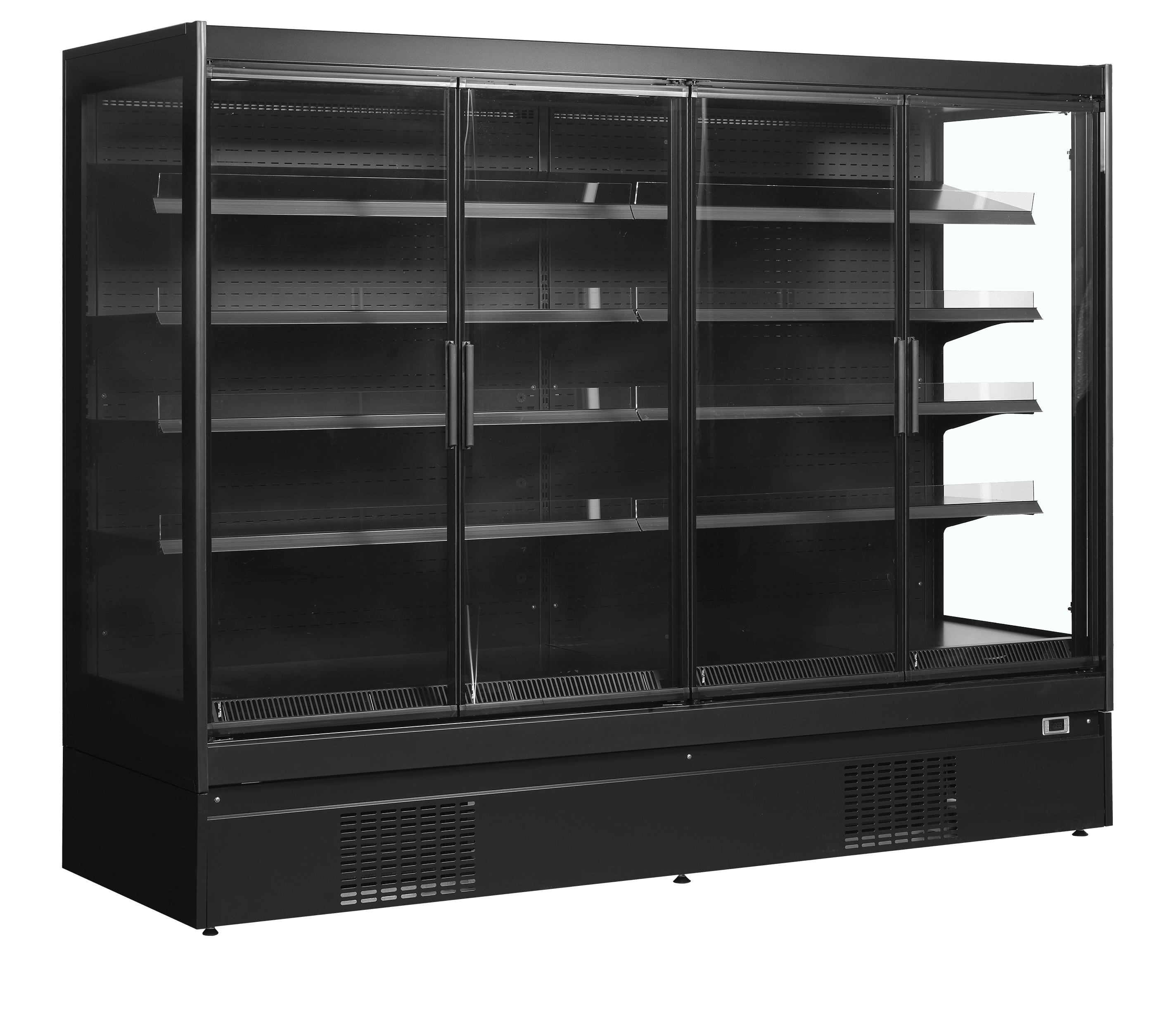 EXTRA Multideck est une vitrine réfrigérée à froid positif de qualité à portes battantes à double vitrage afin de réduire la consommation d'énergie et les coûts de fonctionnement. Elle possède des étagères de 460 mm de profondeur pour une capacité de stockage maximale et contribuer à augmenter les ventes pendant les périodes de forte fréquentation en réduisant la fréquence de réapprovisionnement. Elle est dotée d'un excellent éclairage interne à base de bandeaux LED verticaux sur chaque porte et horizontaux sur le dessus du modèle 2500. Les tablettes peuvent être planes ou inclinées de 10° ou 20° avec bandes d'étiquetage et rebords de série. Cette vitrine convient à la présentation de viande fraîche préemballée, de produits laitiers ou de boissons. Elle est parfaite pour les supermarchés, les épiceries, traiteurs et sandwicheries ou des équipements frigorifiques sont obligatoires. L'installation est simple et rapide. Pas d'obligation particulière, car la charge de gaz est inférieure à 150 g. Ce modèle est compatible avec la canalisation et élargit vos perspectives pour tirer le meilleur parti de l'espace disponible. L'appareil peut être commandé sans parois latérales et avec un kit de canalisation si nécessaire.