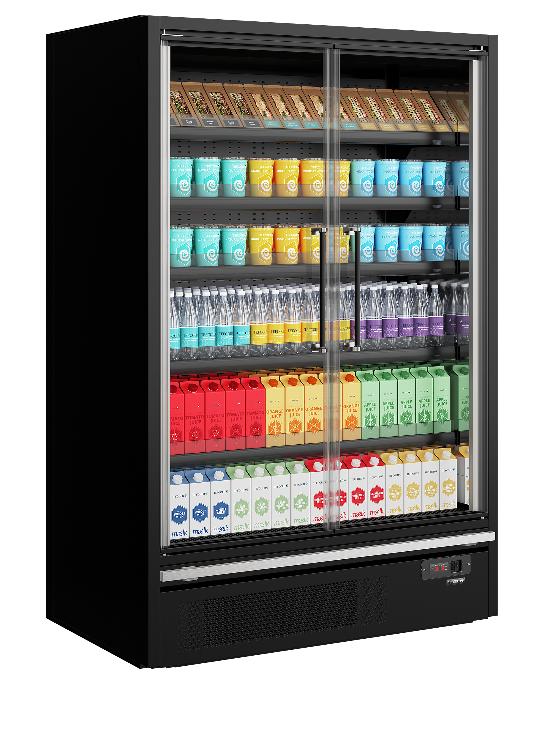 Cette vitrine réfrigérée à portes entièrement vitrées combine superbe design et système de réfrigération à économie d'énergie. Les portes entièrement vitrées sans montant offrent une excellente vue sur les produits. À l'intérieur de l'armoire, un cordon vertical d'éclairage LED de chaque côté, associé à un autre cordon LED au-dessus des portes, assure un excellent éclairage mettant le contenu en valeur. L'armoire est dotée de 5 étagères particulièrement profondes (en plus de la base), pour un excellent espace de stockage et de présentation. Il est possible d'incliner les étagères pour optimiser la présentation des produits. Des kits de canalisation sont disponibles en accessoires pour pouvoir mettre en place un rayonnage continu dans votre magasin. Grâce à un système de réfrigération soigneusement étudié et à une bonne optimisation de la circulation de l'air, cette vitrine consomme très peu d'énergie et présente une classification énergétique impressionnante.