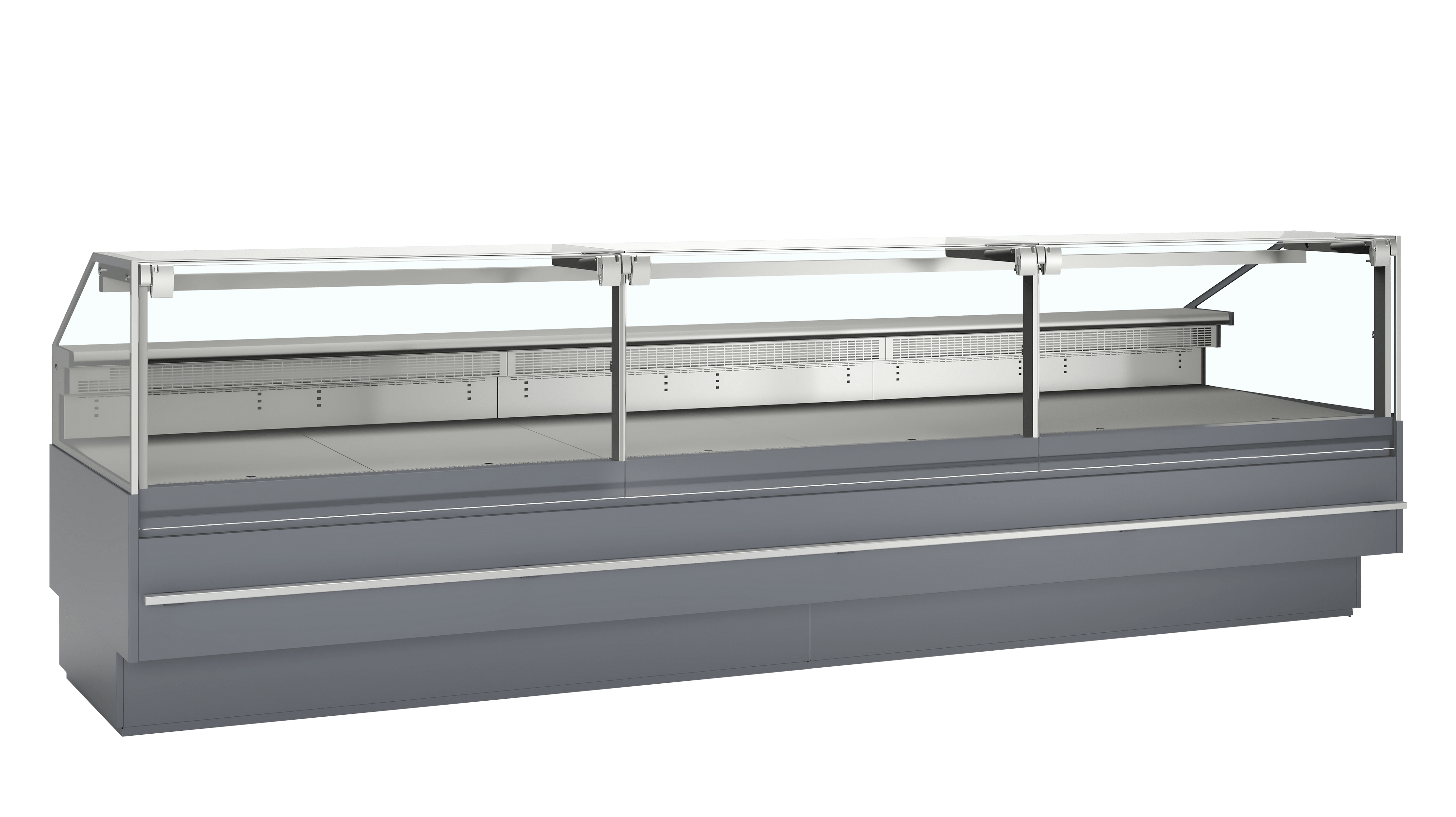 La vitrine est équipée d'une finition extérieure en gris RAL7015 élégante et d'une finition intérieure en acier inoxydable, offrant à la fois durabilité et esthétique. Ses dimensions intérieures généreuses de 3750 x 900 x 545 mm vous permettent d'exposer une large gamme de produits, tandis que ses dimensions extérieures de 3798 x 1120 x 1190 mm s'intègrent parfaitement dans votre espace de travail.